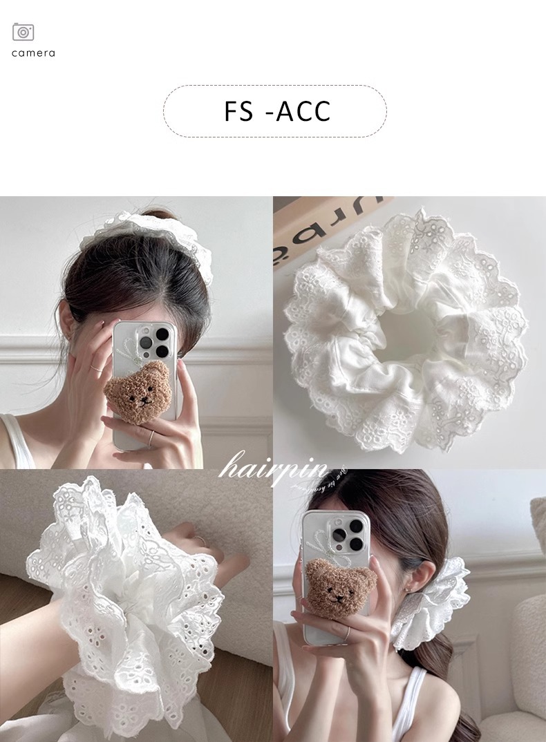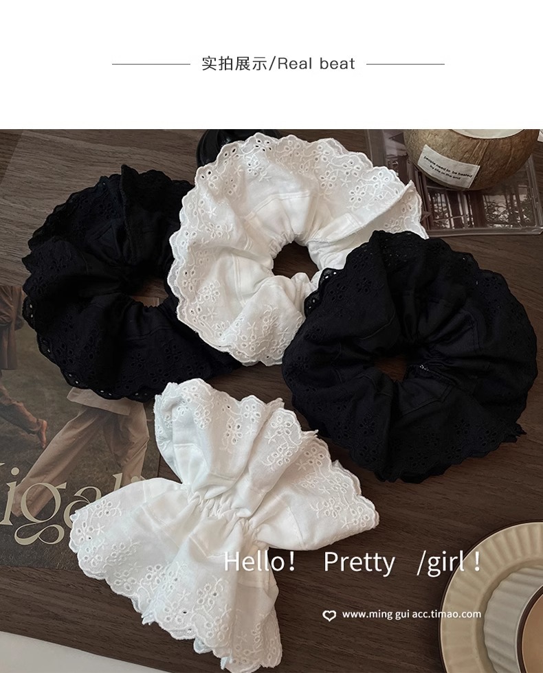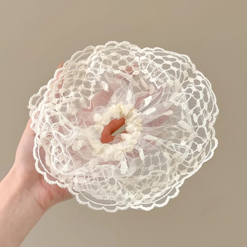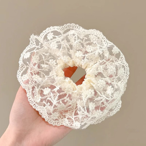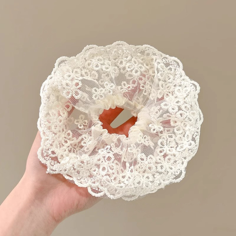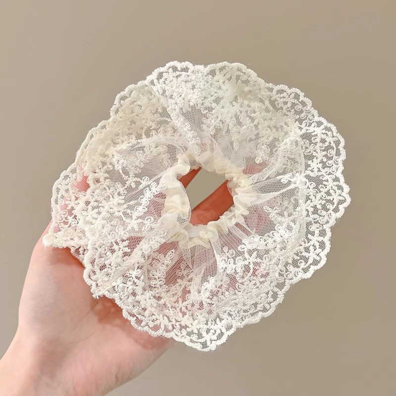 法式少女风大肠发圈女白色蕾丝镂空发饰韩系公主风头绳感发绳