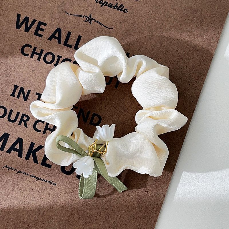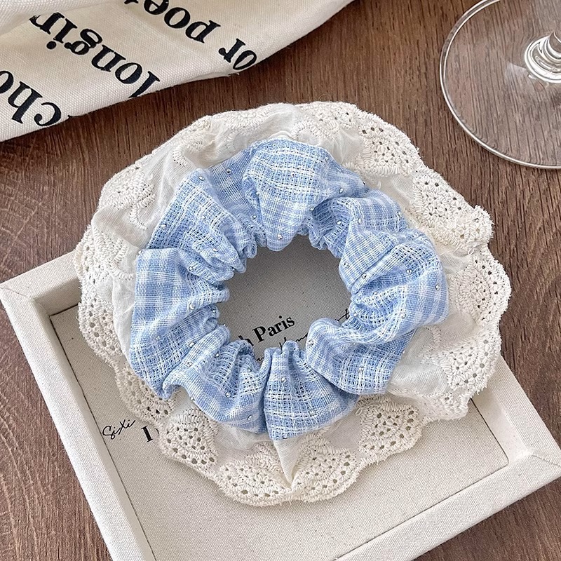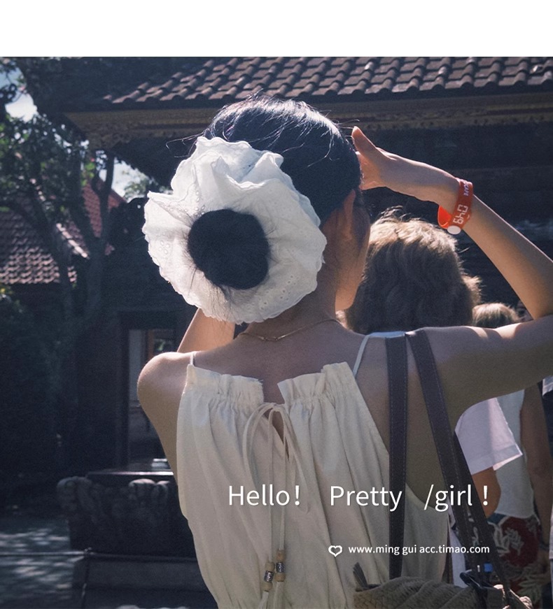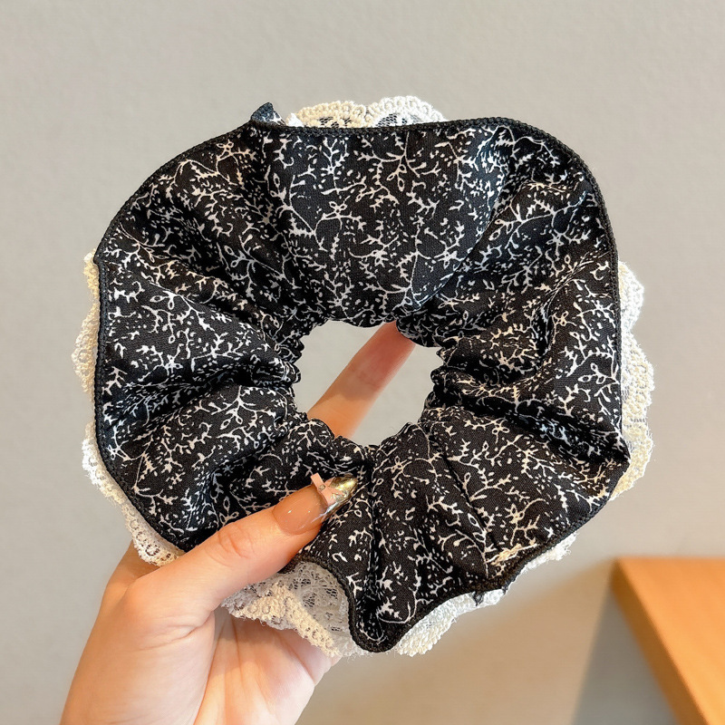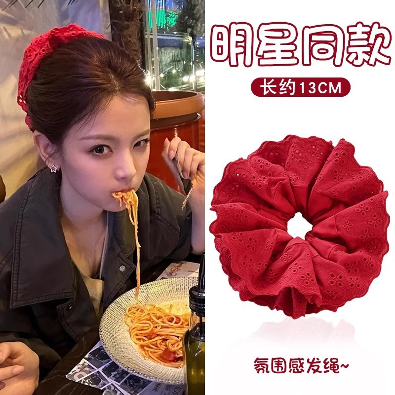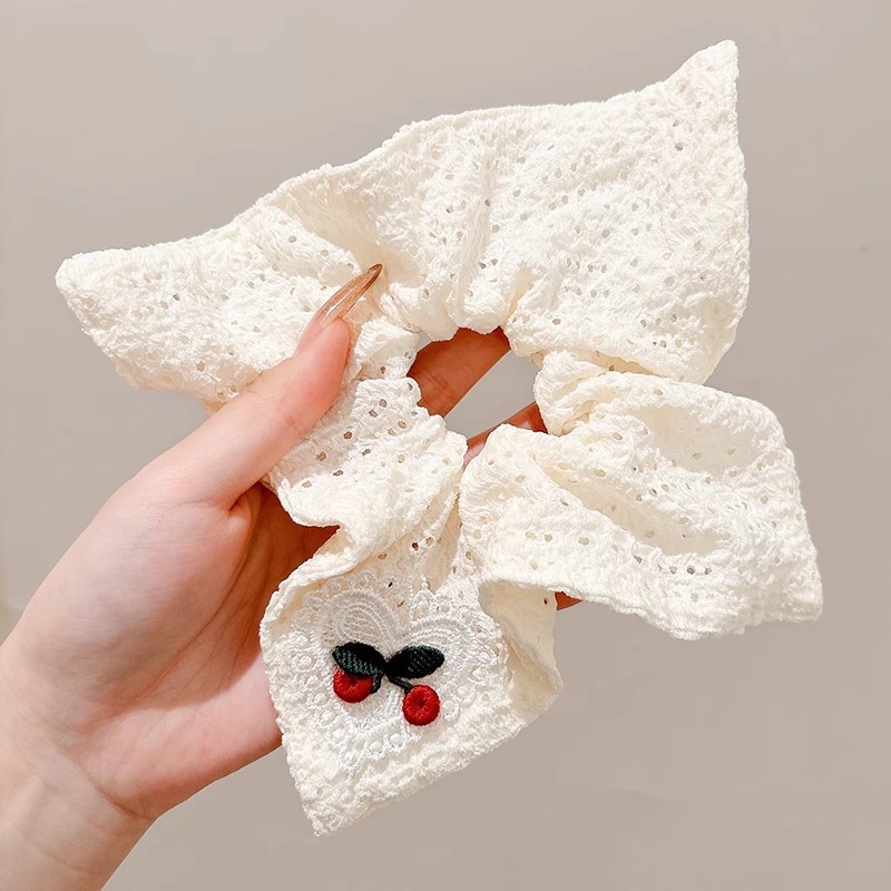 法式少女风大肠发圈女白色蕾丝镂空发饰韩系公主风头绳感发绳