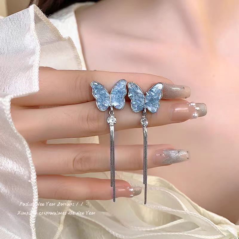 S925银针水晶蝴蝶耳环女爆款百搭轻奢小香风时尚耳钉气质耳饰批发