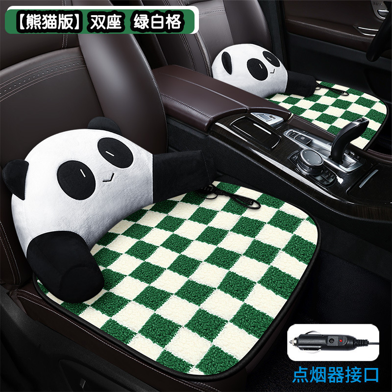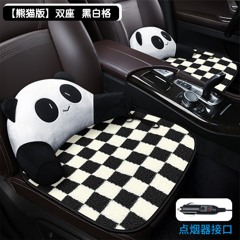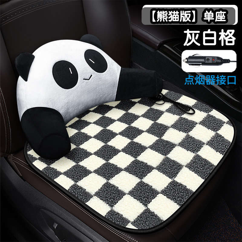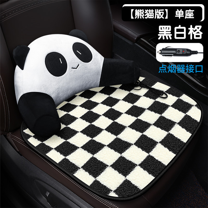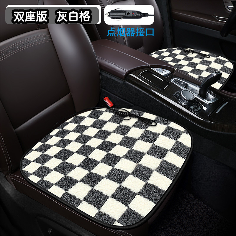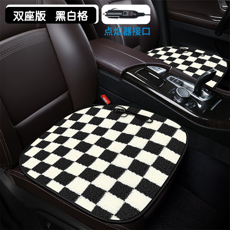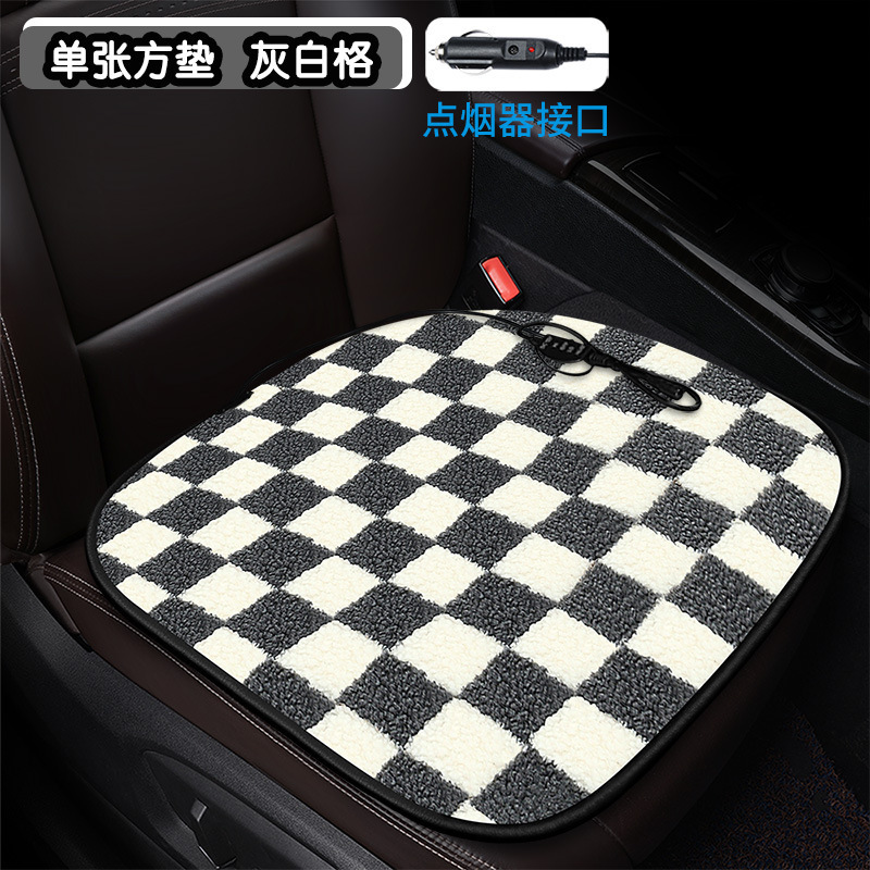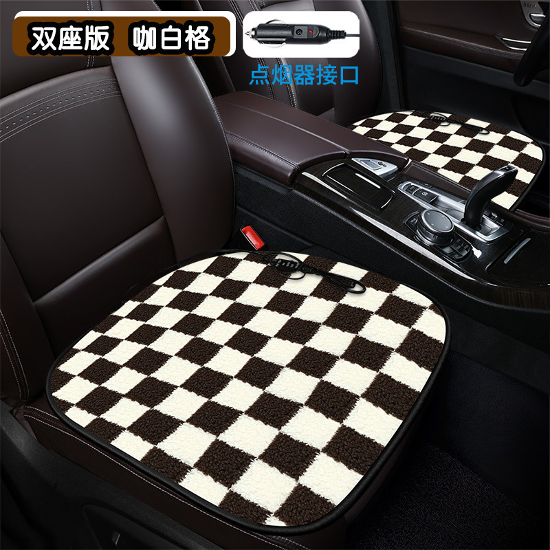批发棋盘格加热垫汽车坐垫跨境卡通花朵羊羔绒内饰用品冬季单座垫