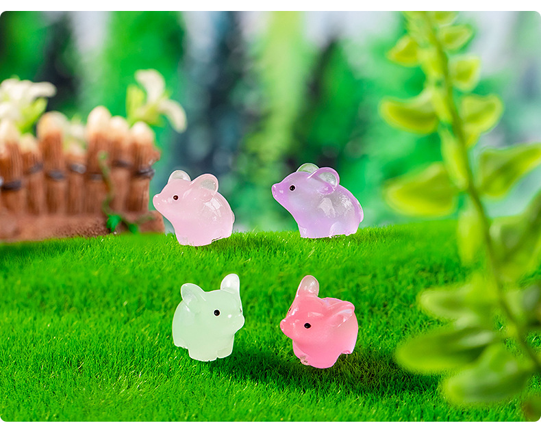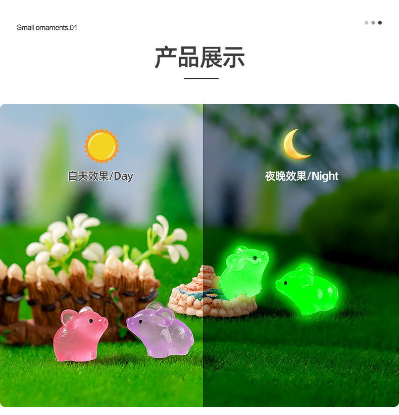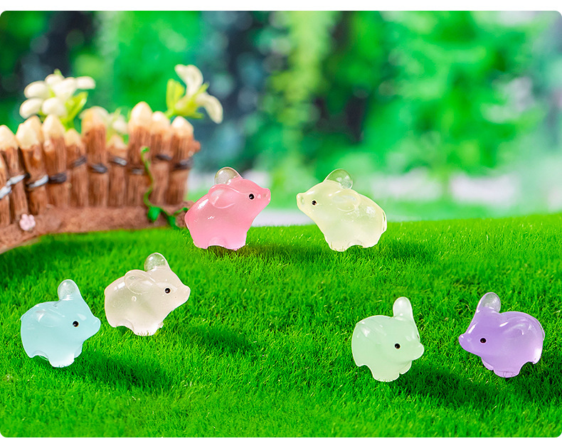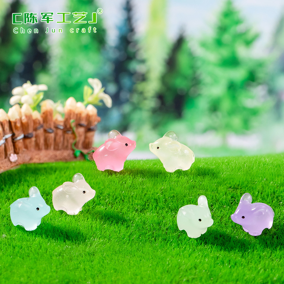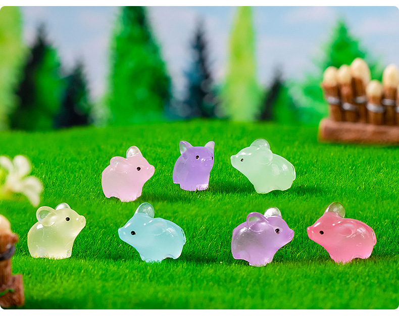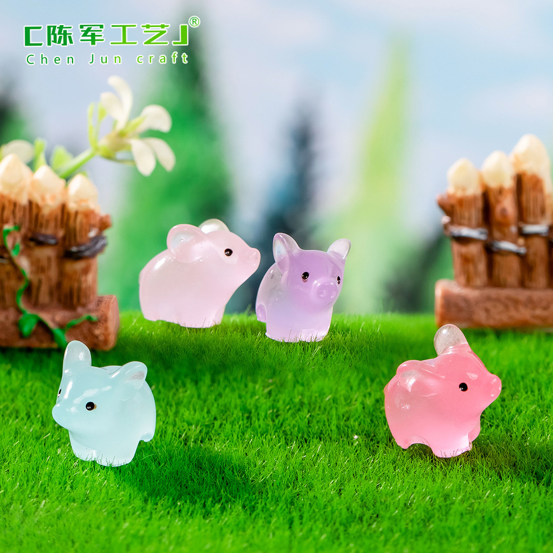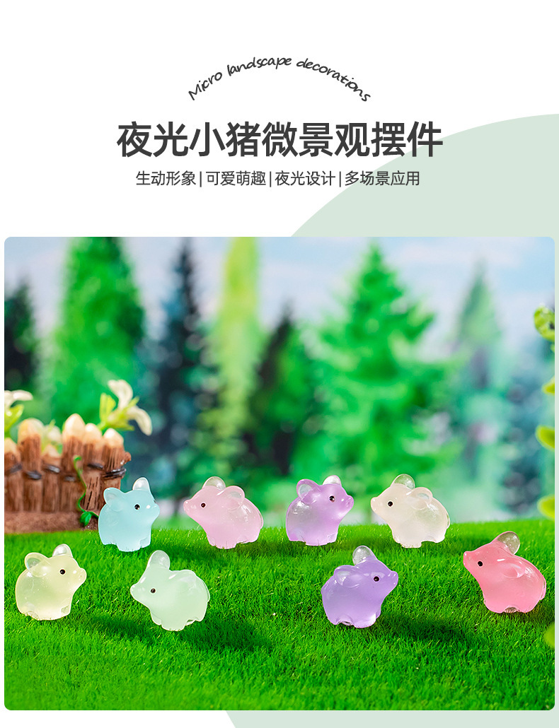 苔藓微景观夜光可爱彩色小猪 diy装饰品挂配件迷你车载桌面小摆件