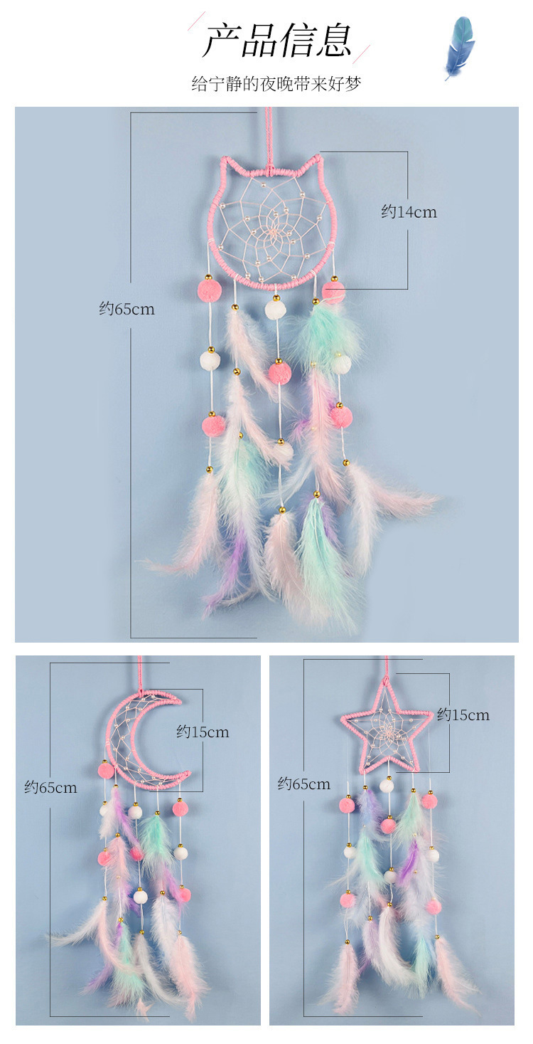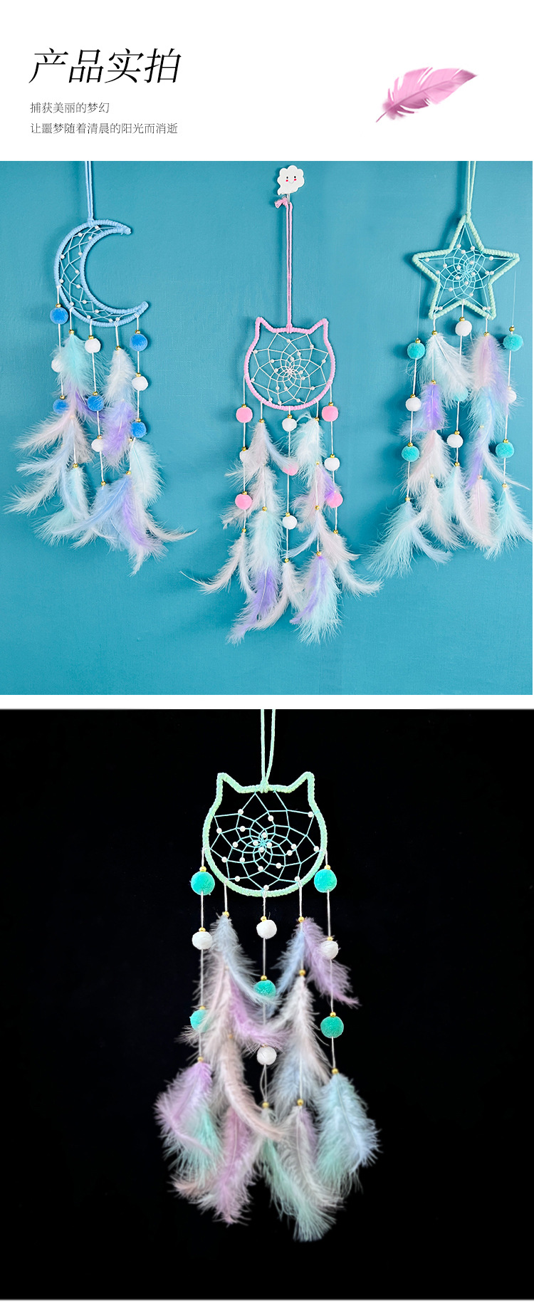 少女心捕梦网挂饰风铃手工diy材料包羽毛编织挂件可爱儿童房装饰