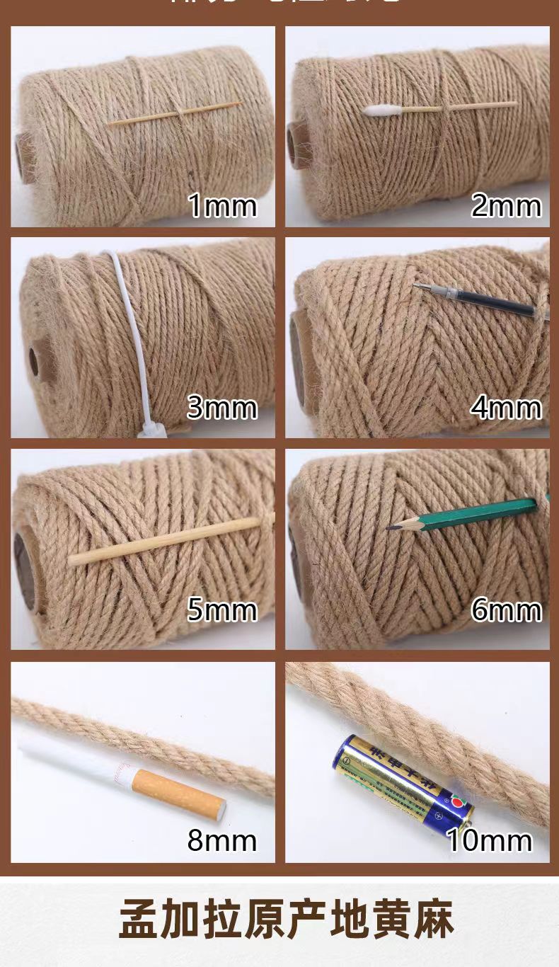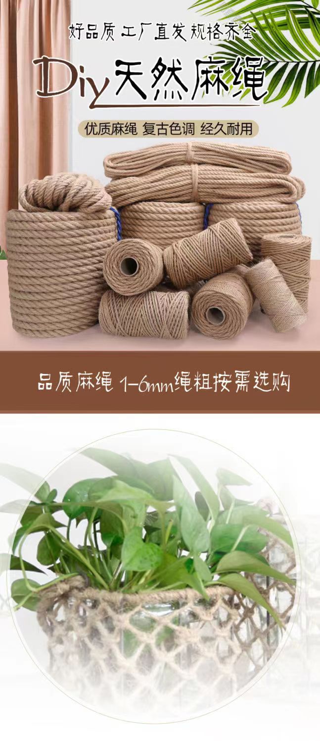 麻绳源头工厂黄色细麻绳捆绑绳手工编制麻绳猫爬架diy材料绳子
