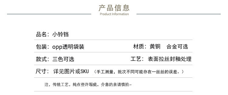 2.8黄铜铃铛 diy手工风铃材料配件圣诞小铃铛创意金属车挂装饰品
