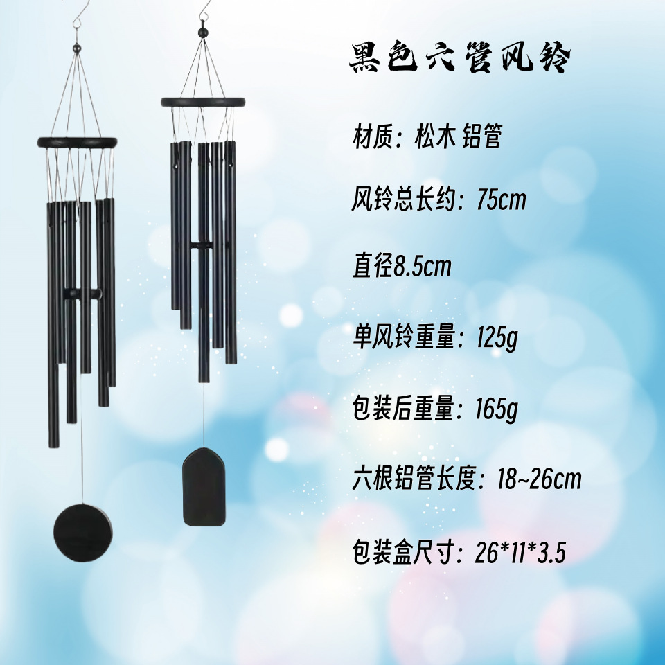 亚马逊爆款6管黑色风铃22寸旋转实木户外装饰门饰礼品风铃批发