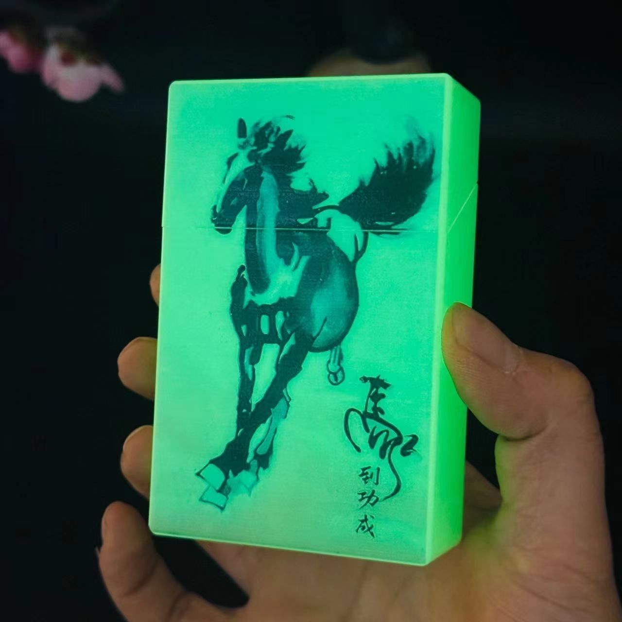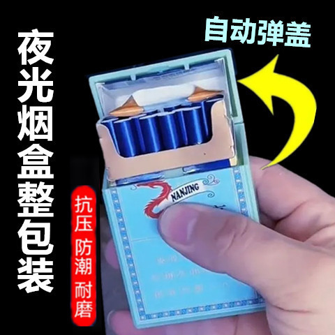 夜光烟盒自动弹盖20支装便携翻盖软硬通用抗压防潮香烟盒批发代发