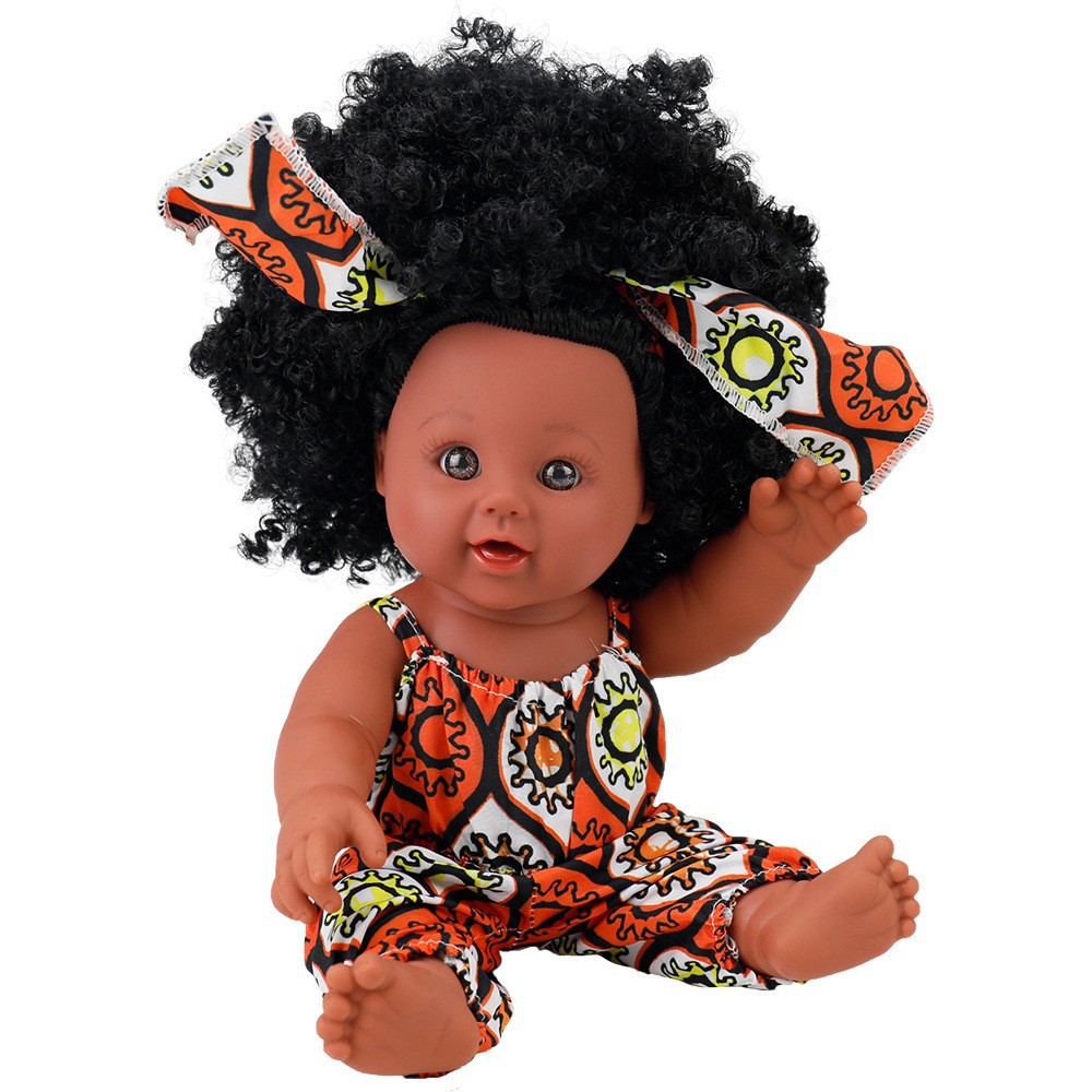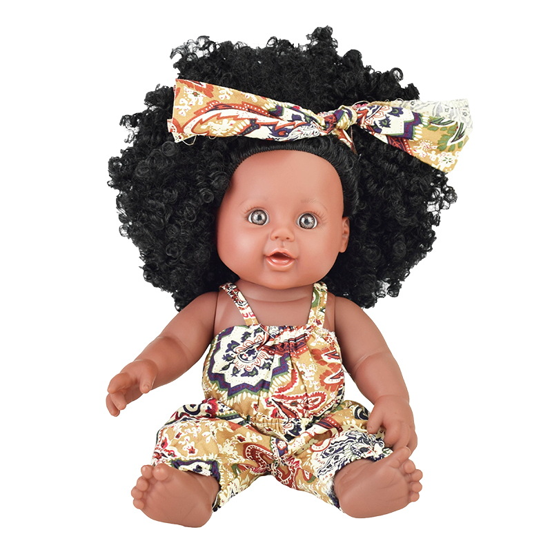 30厘米非洲爆炸头仿真洋娃娃搪胶公仔安抚玩偶女孩玩具批发散货