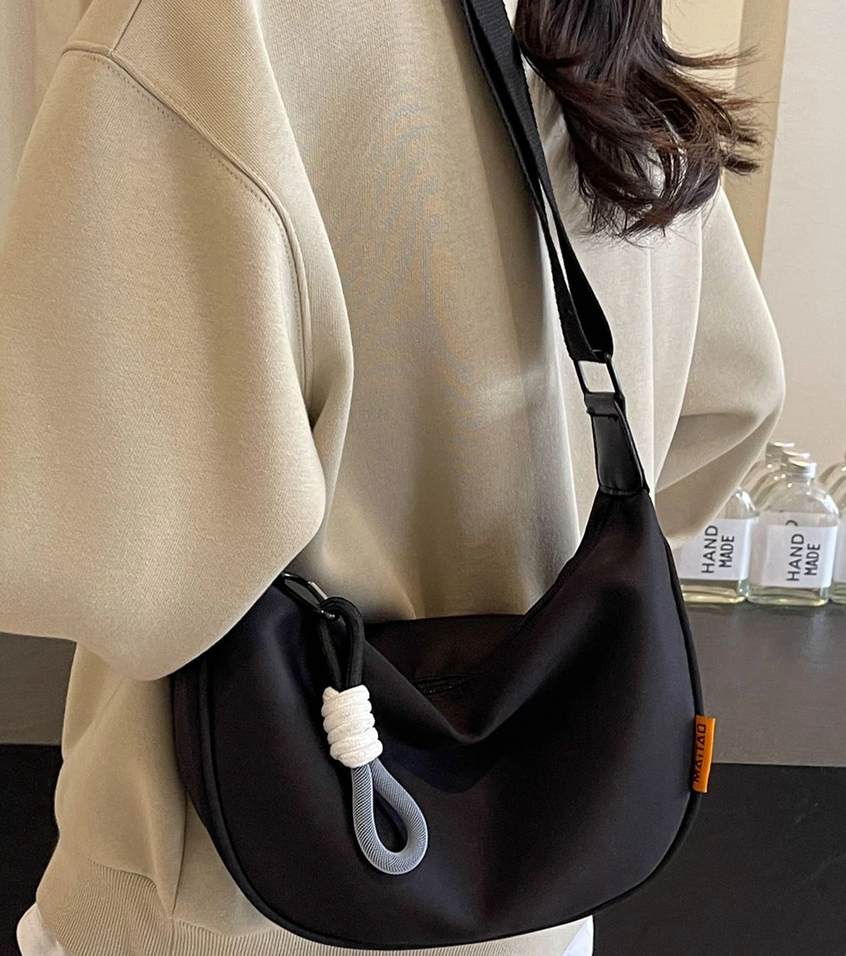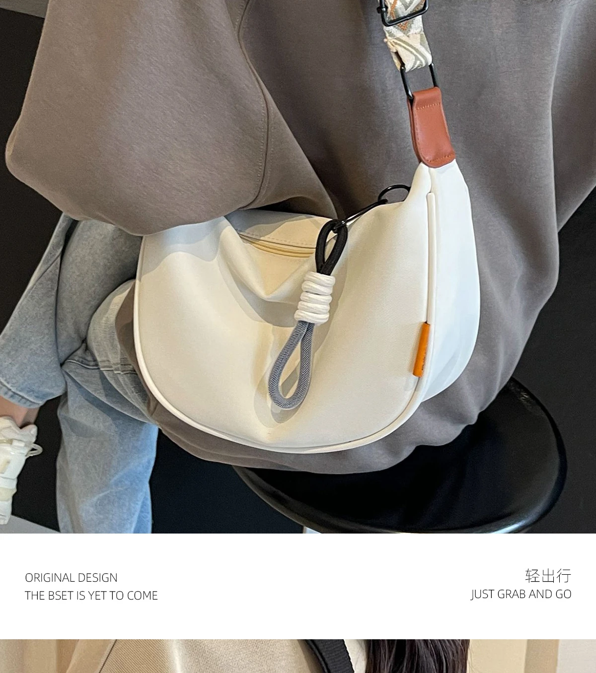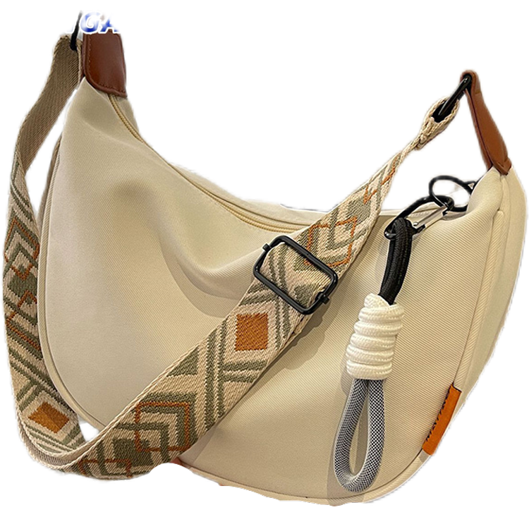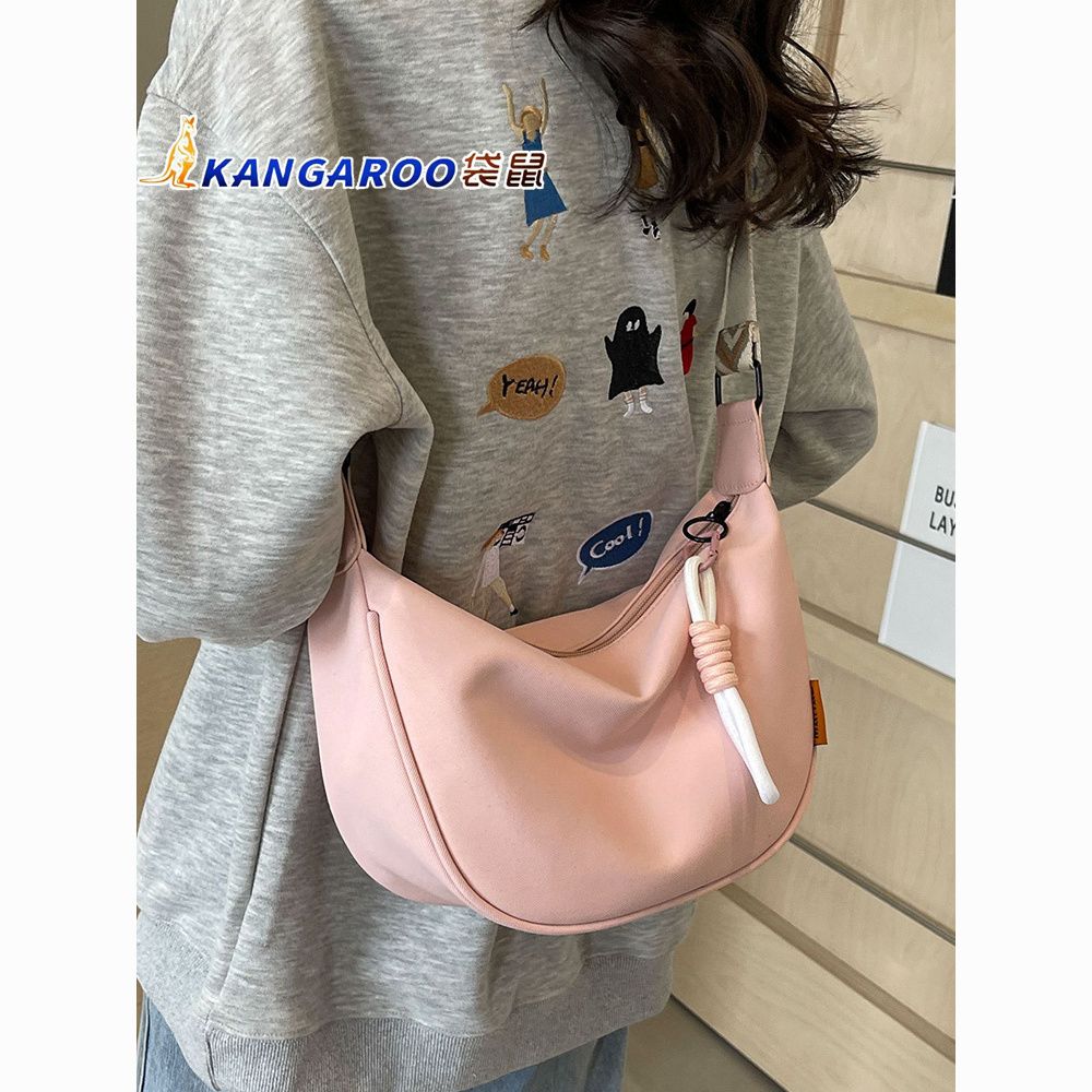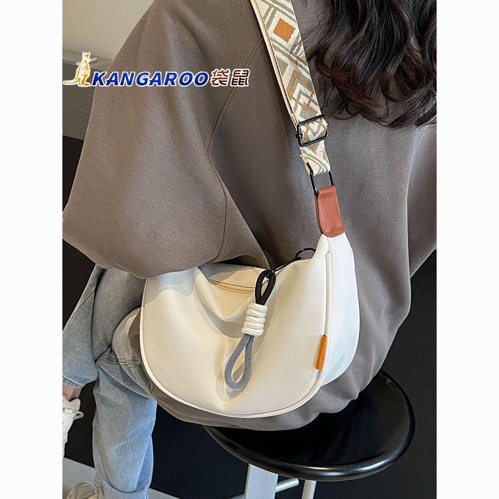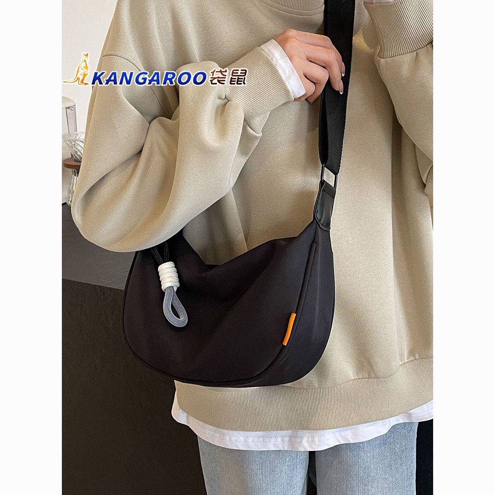 袋鼠 斜挎包包女布包夏季尼龙休闲饺子包小众通勤包单肩百搭新款