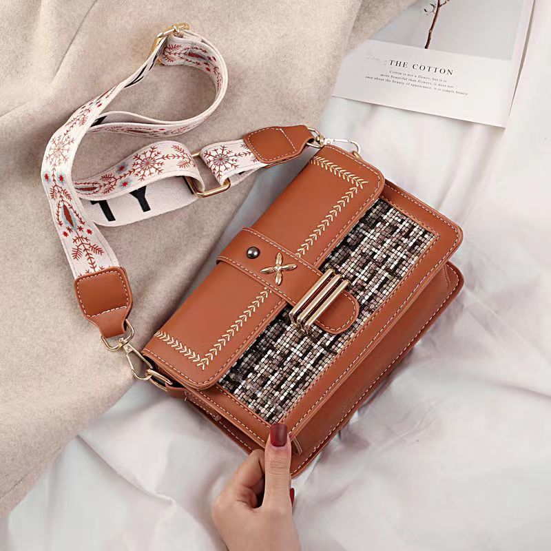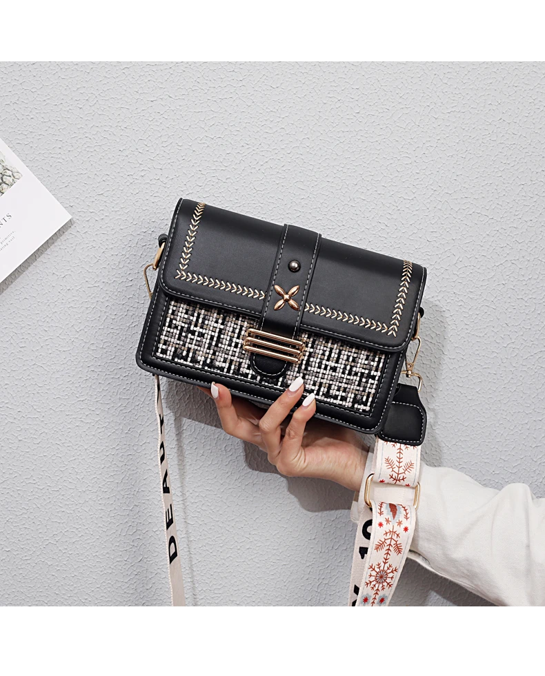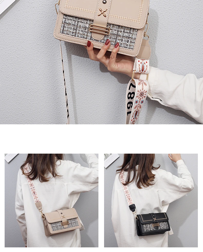 包包女2025新款潮时尚百搭韩版小方包翻盖质感女包宽带单肩斜挎包