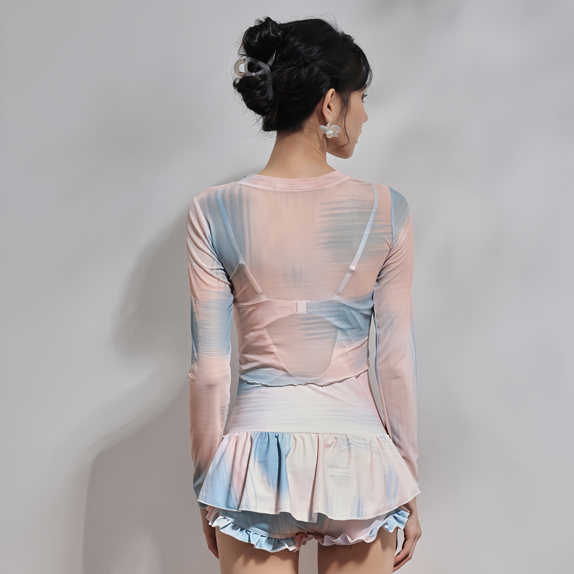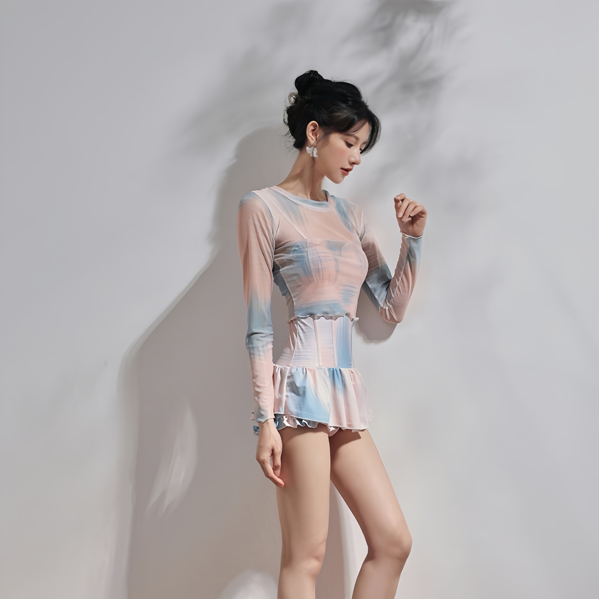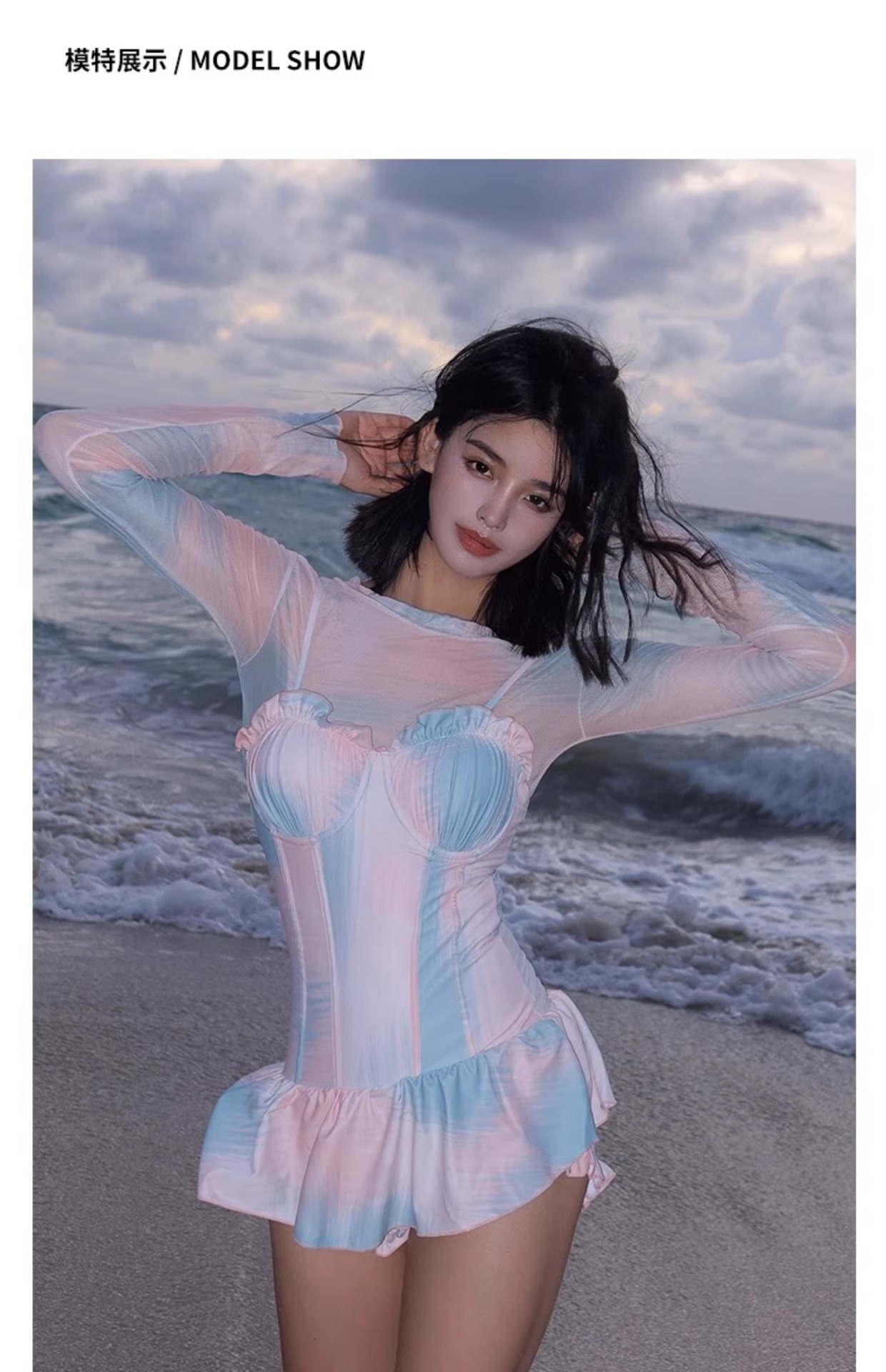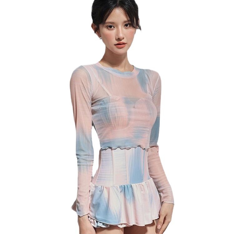泳衣女夏2025新款性感显瘦遮肚小胸聚拢保守高级感长袖游泳衣温泉