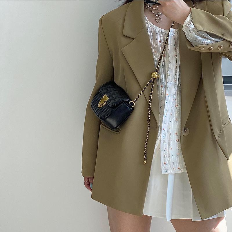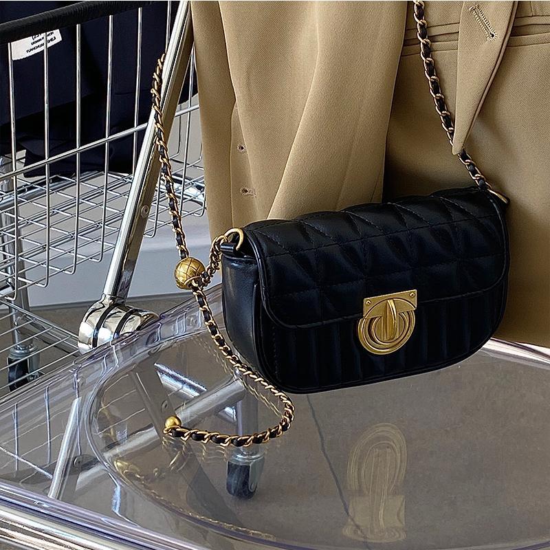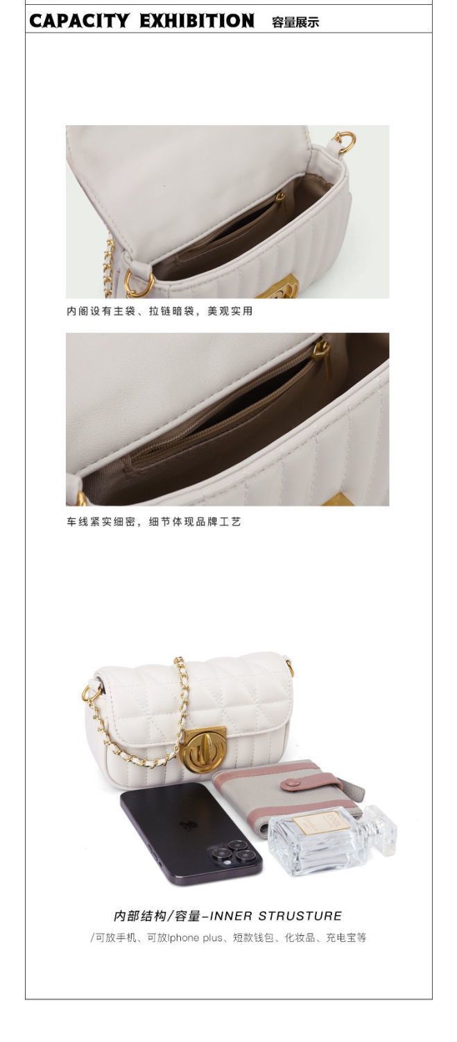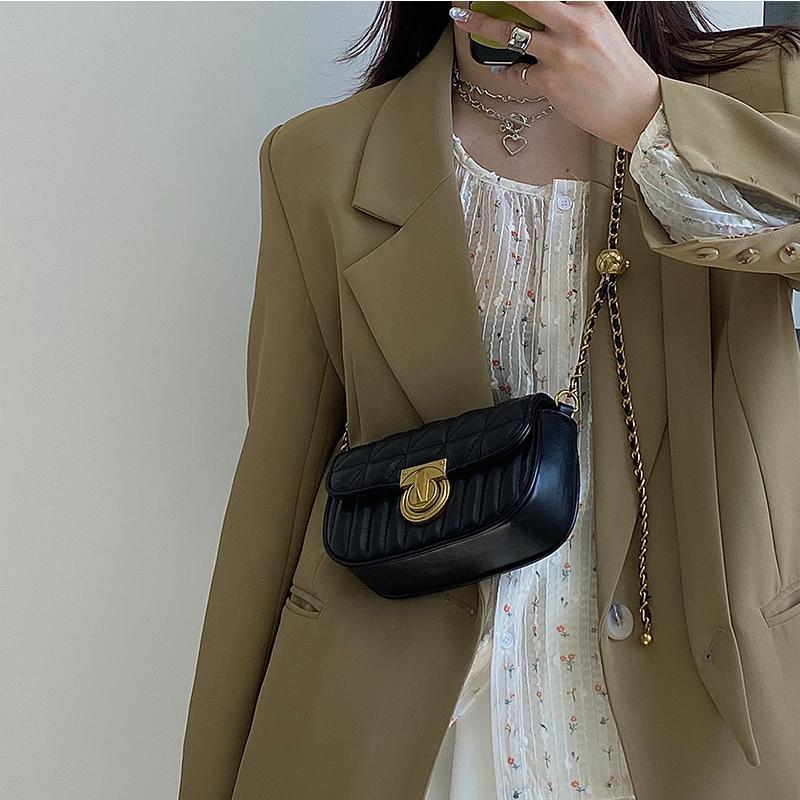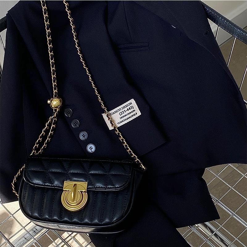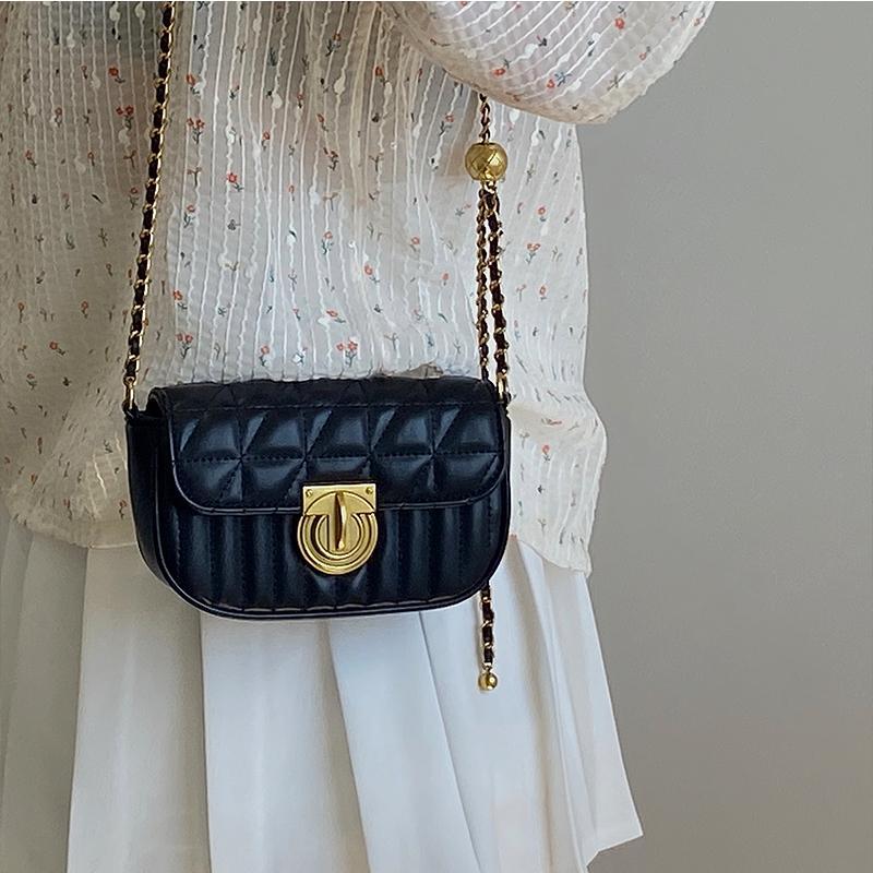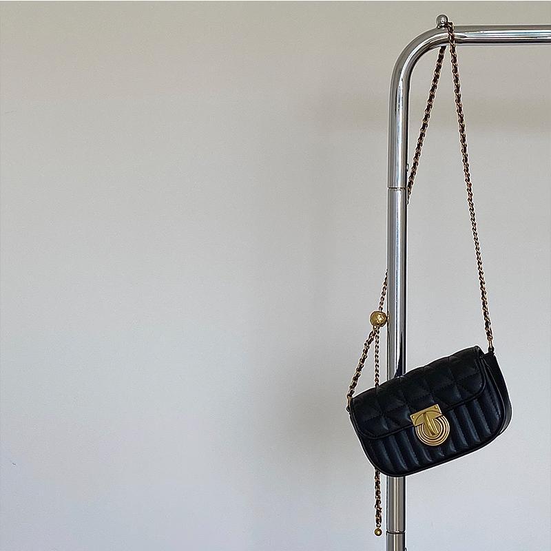 鹿子 2024小众设计新款女包百搭菱格锁扣链条小包单肩斜挎小方包