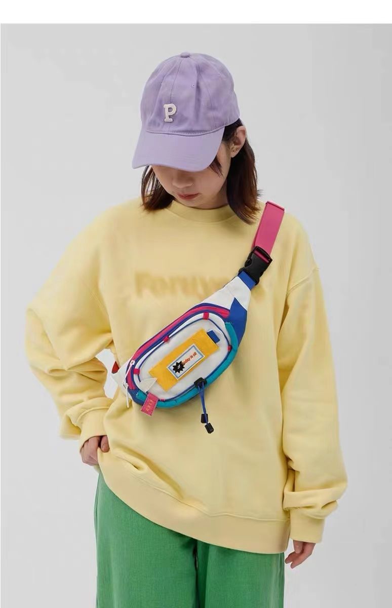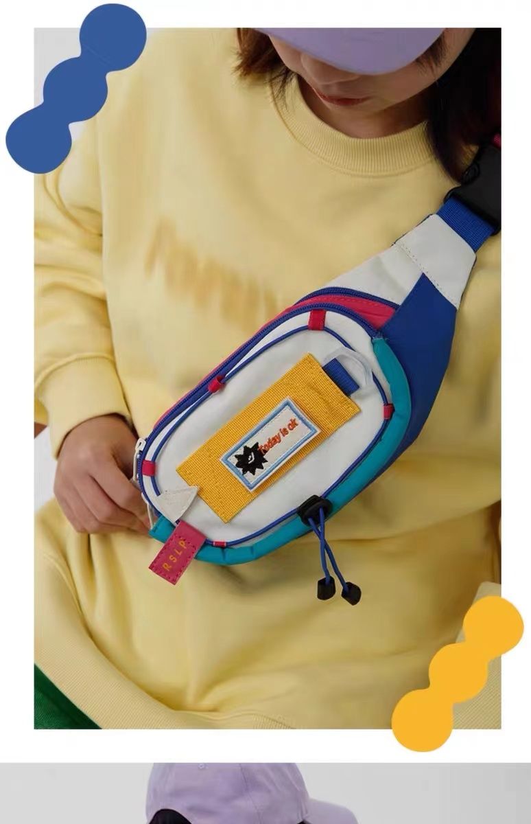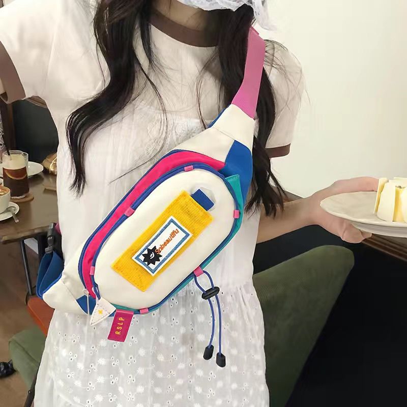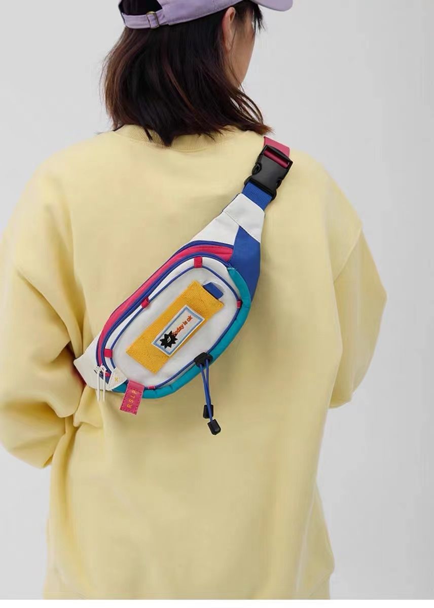 女包腰包拼接新款可爱女撞色小众斜挎胸包手机零钱腰包运动风百搭