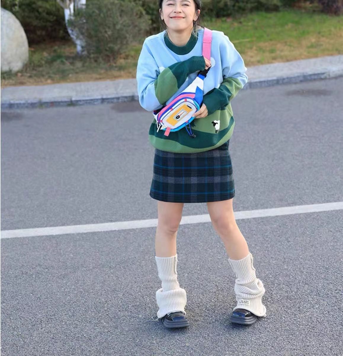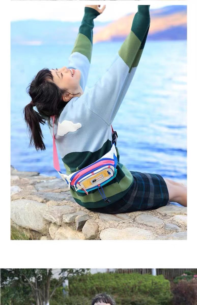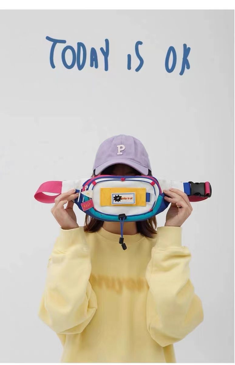 女包腰包拼接新款可爱女撞色小众斜挎胸包手机零钱腰包运动风百搭