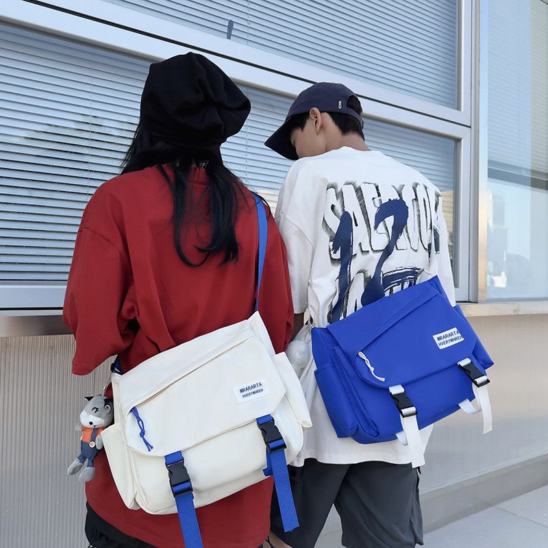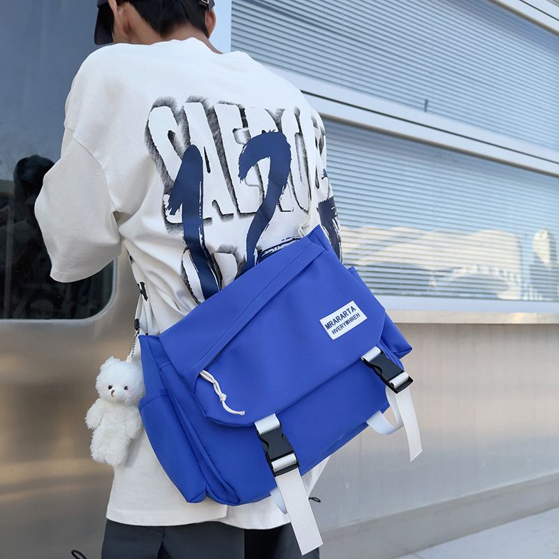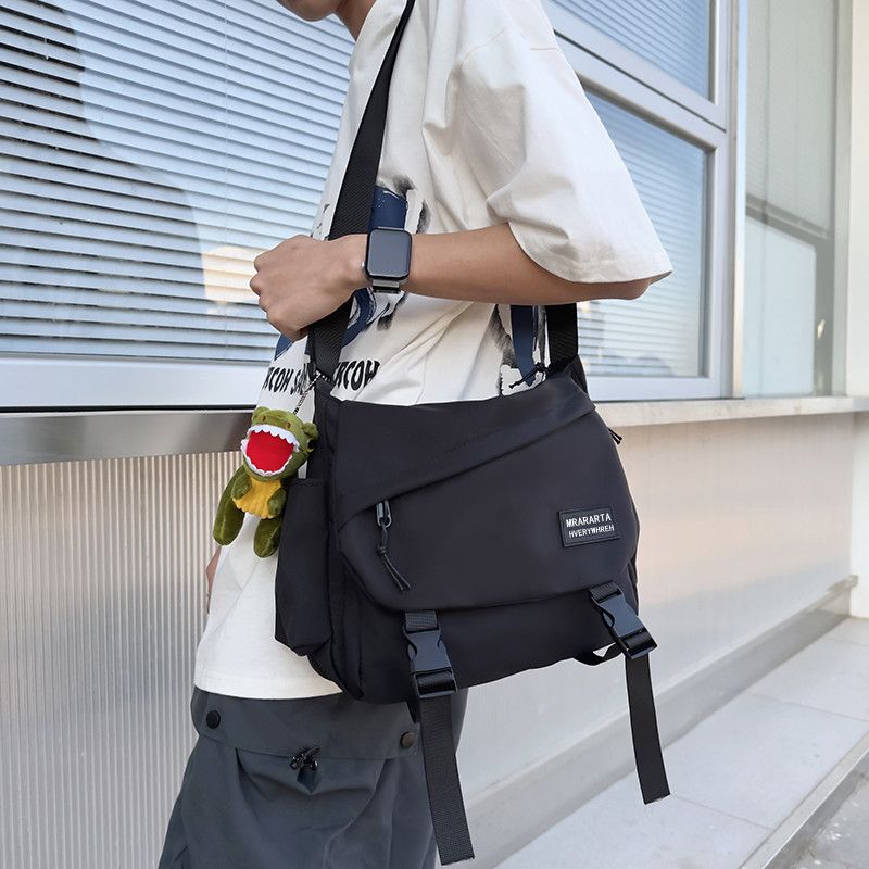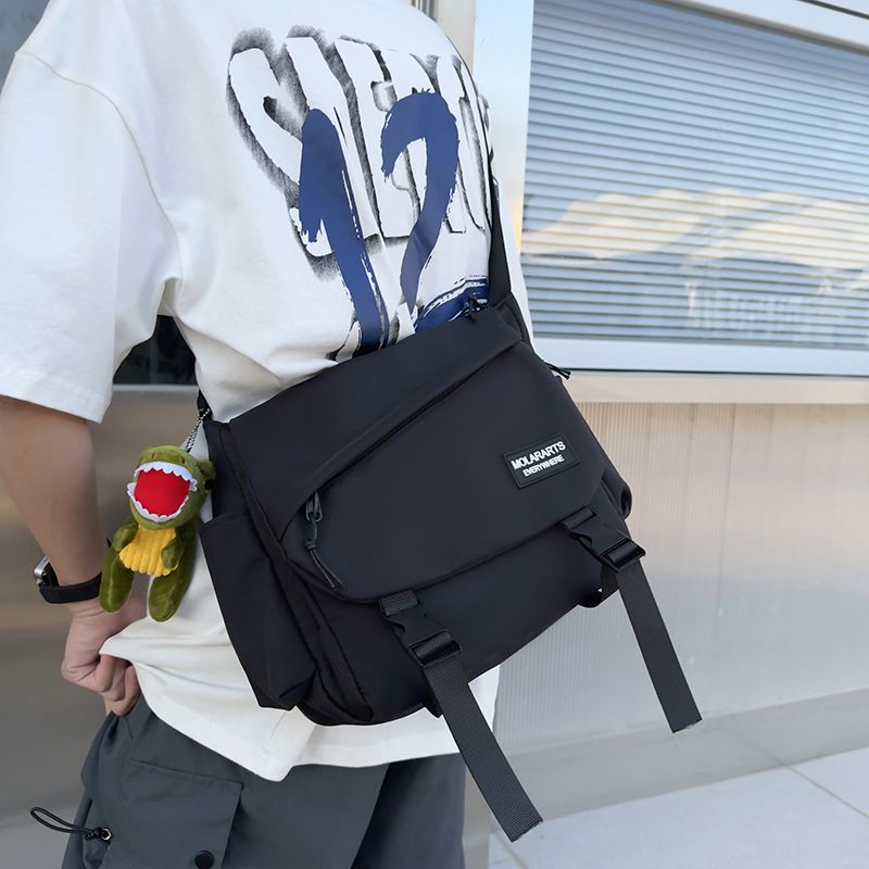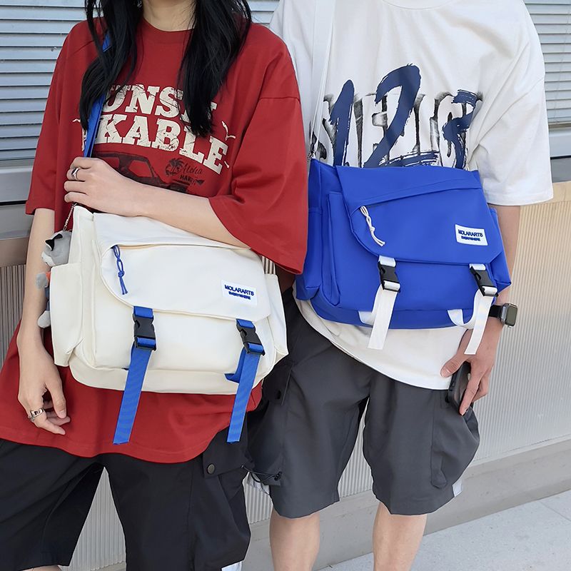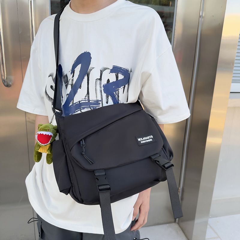 男士斜挎包潮牌大容量单肩学生情侣背包休闲防水邮差尼龙布帆布包