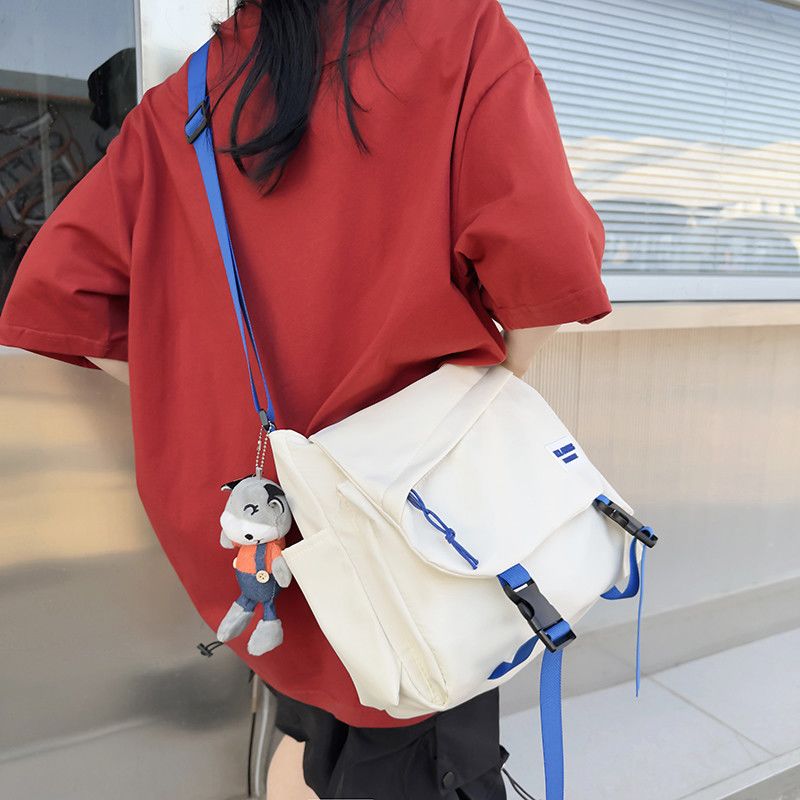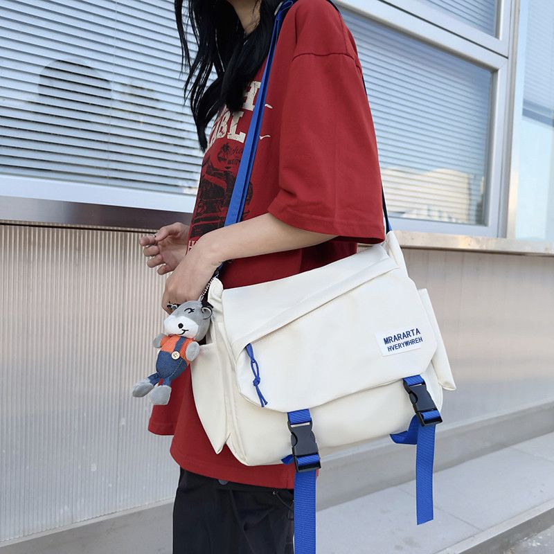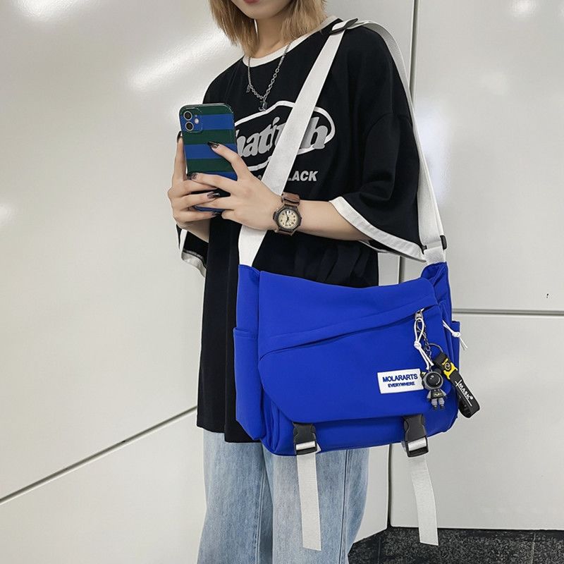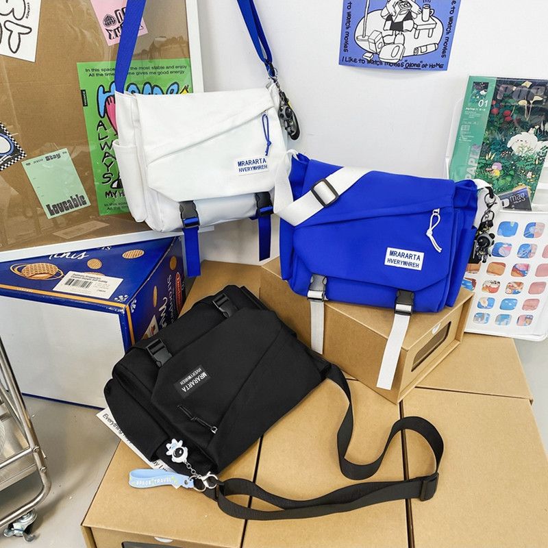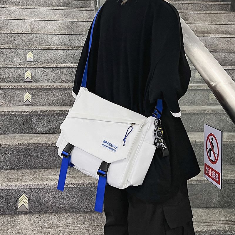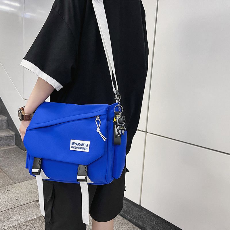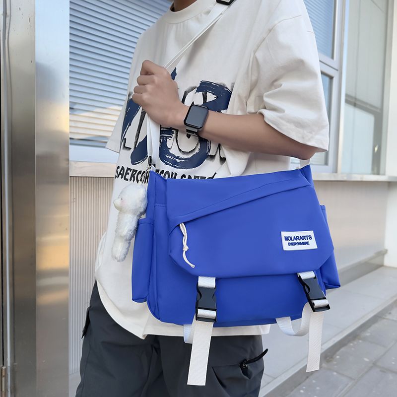 男士斜挎包潮牌大容量单肩学生情侣背包休闲防水邮差尼龙布帆布包