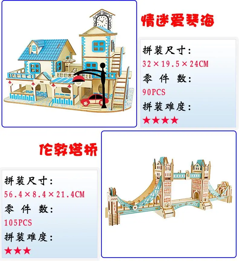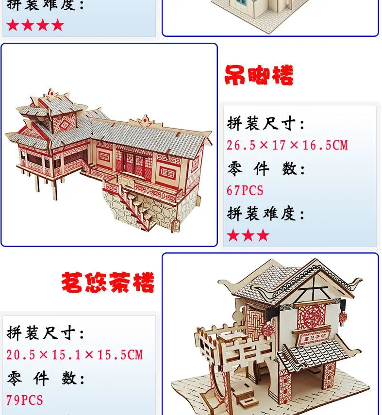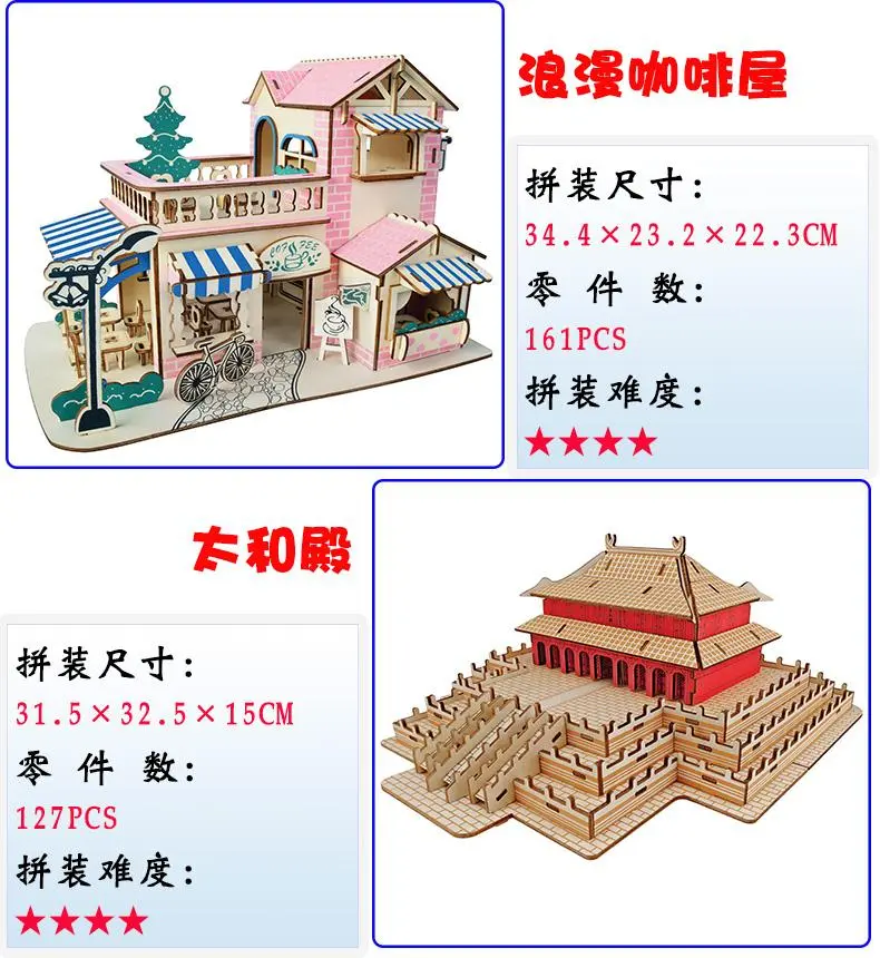 成人高难度3diy木质立体拼图建筑益智拼装模型木头房子拼插积木制