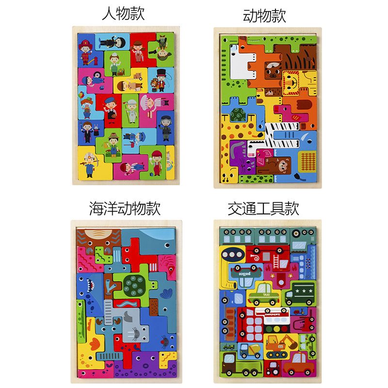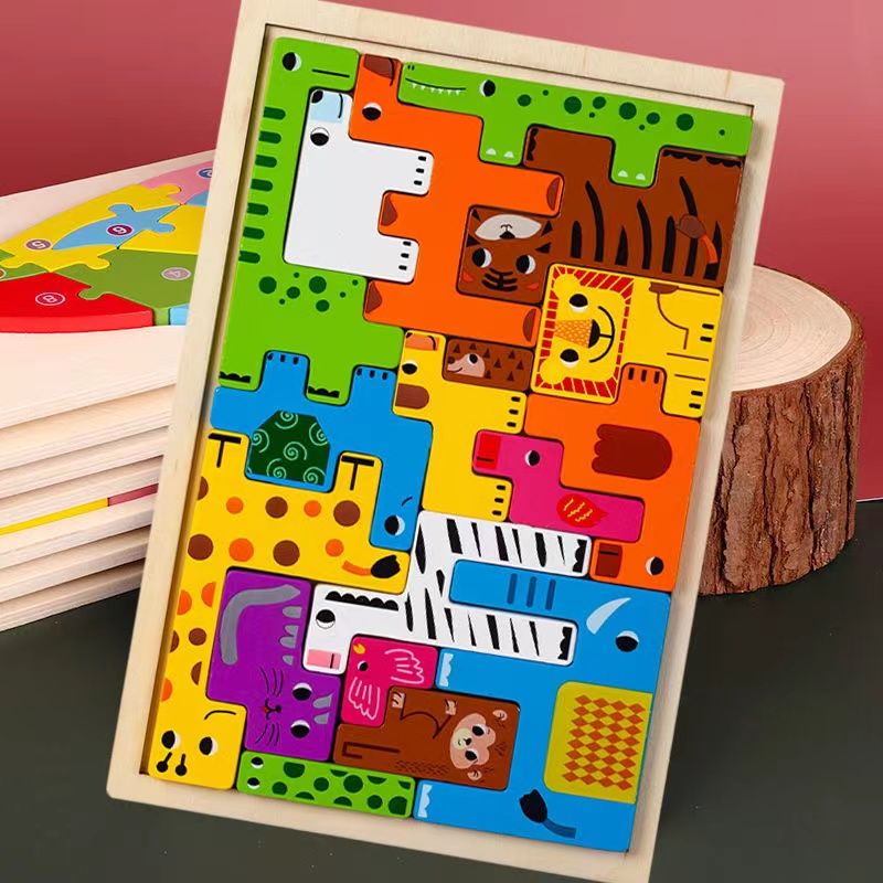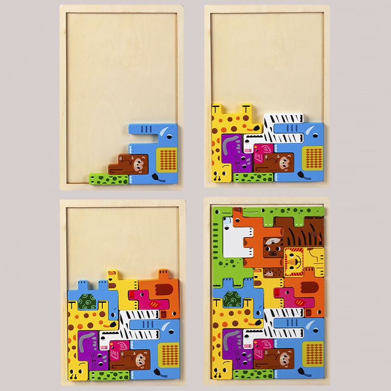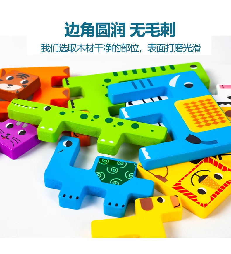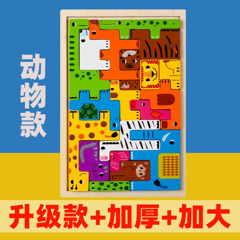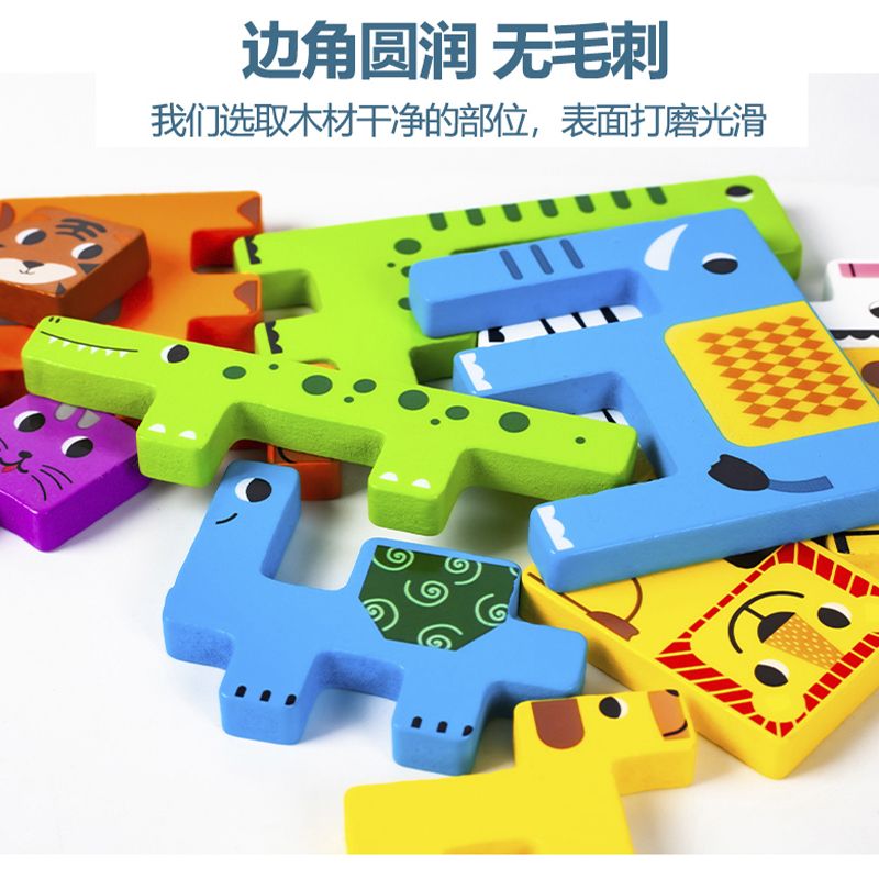 儿童动物拼图俄罗斯方块积木益智早教玩具幼儿园桌面木制拼装游戏