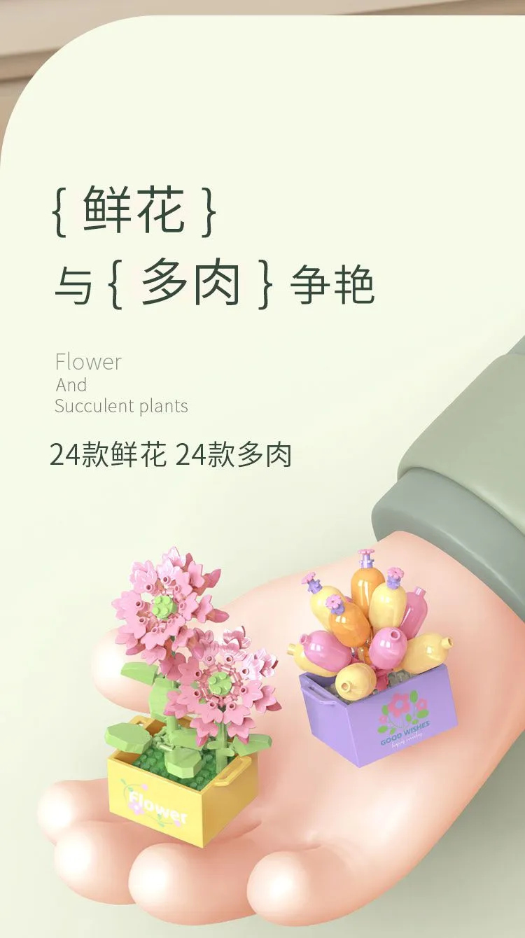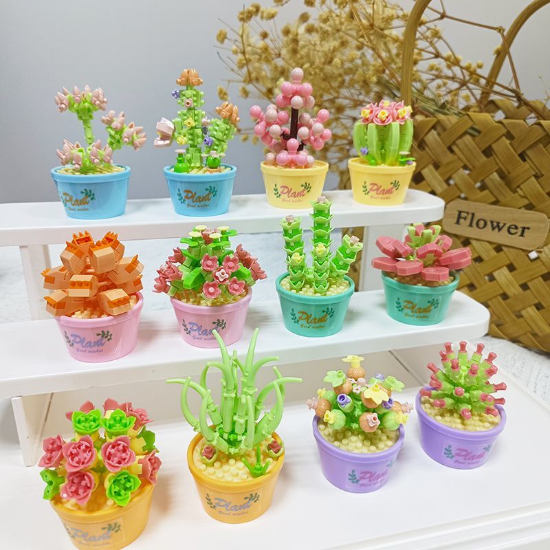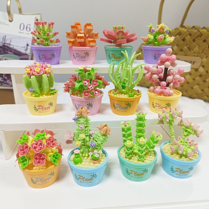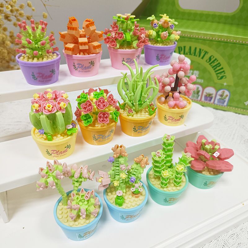 多肉植物盆栽积木花微颗粒儿童益智拼装模型摆件玩具男孩女孩礼物