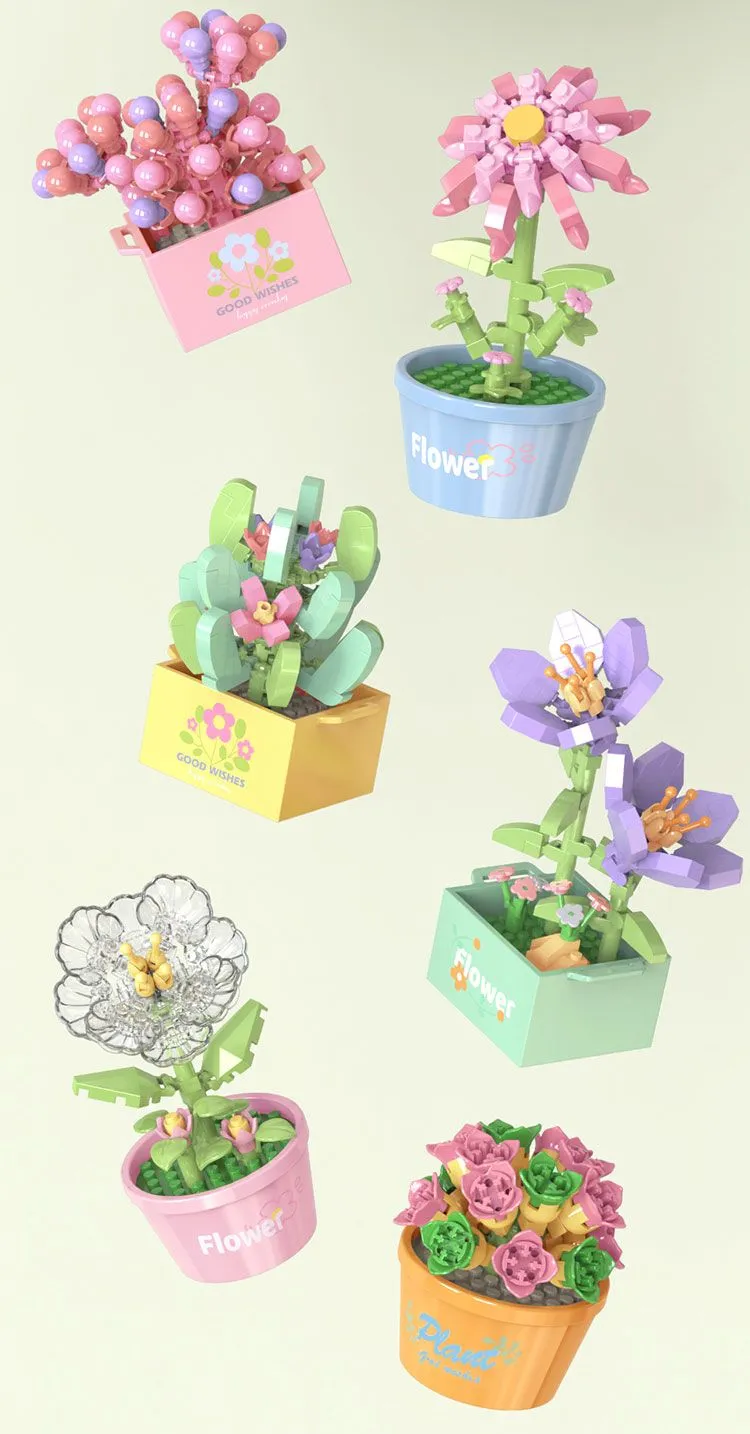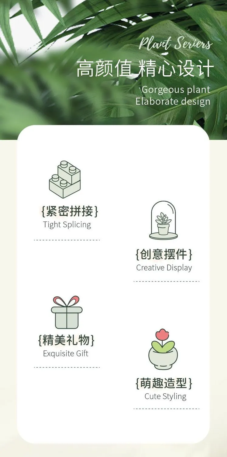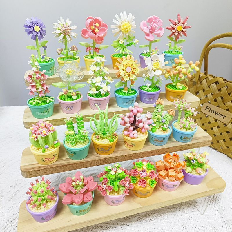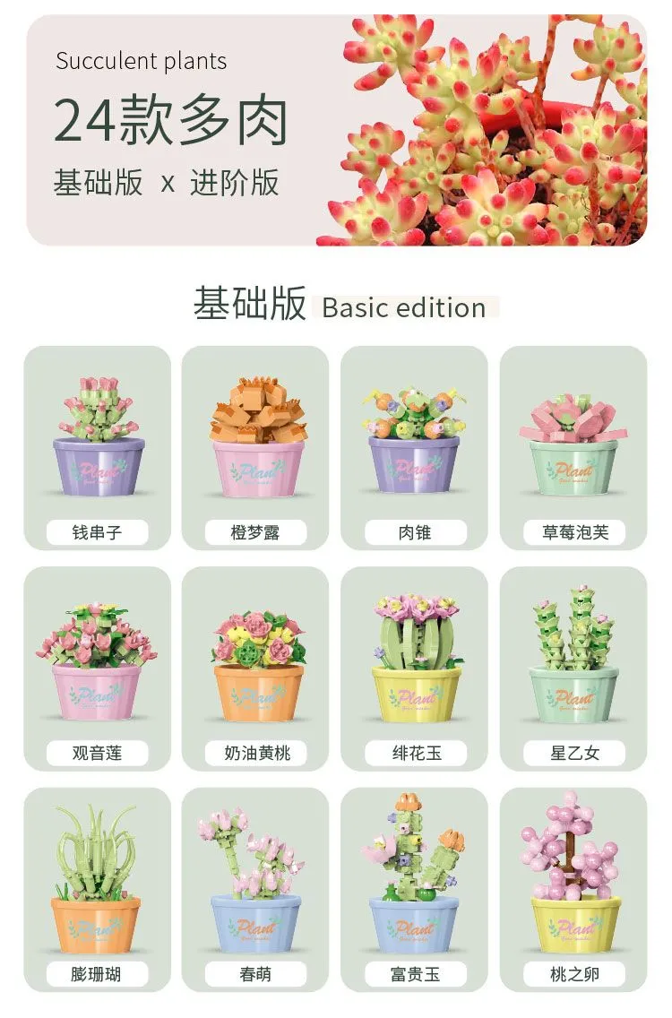 多肉植物盆栽积木花微颗粒儿童益智拼装模型摆件玩具男孩女孩礼物