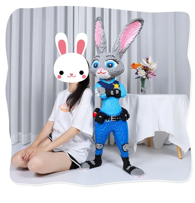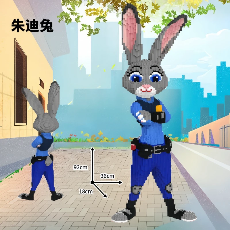 巨型朱迪兔子尼克狐狸积木小颗粒益智拼搭儿童玩具兼容乐高礼物