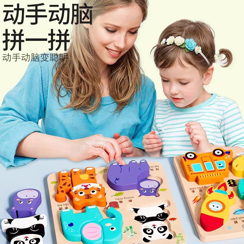 蒙氏早教立体拼图男女孩儿童益智玩具宝宝专注力2到3岁拼图入门级