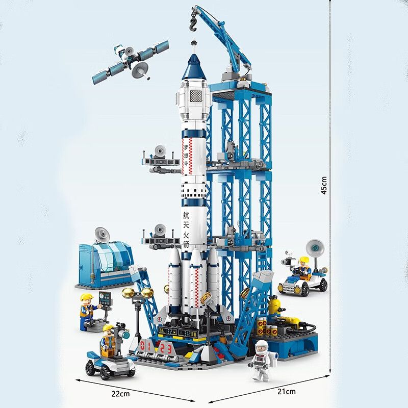 中国载人航天火箭积木模型高难度益智力61儿童节拼装玩具男孩礼物