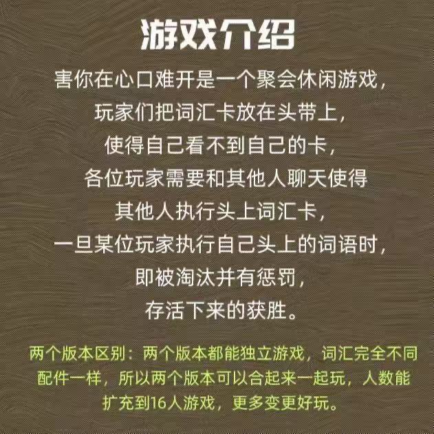 害你在心口难开不要做挑战卡牌游戏猜头上卡片牌桌游纸牌自粘头戴
