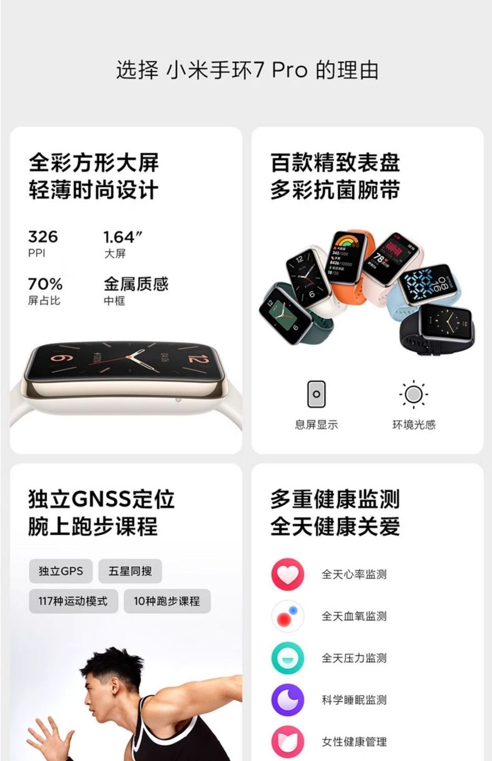 小米7Pro智能手环 多种运动模式 健康运动学生大屏时尚长续航