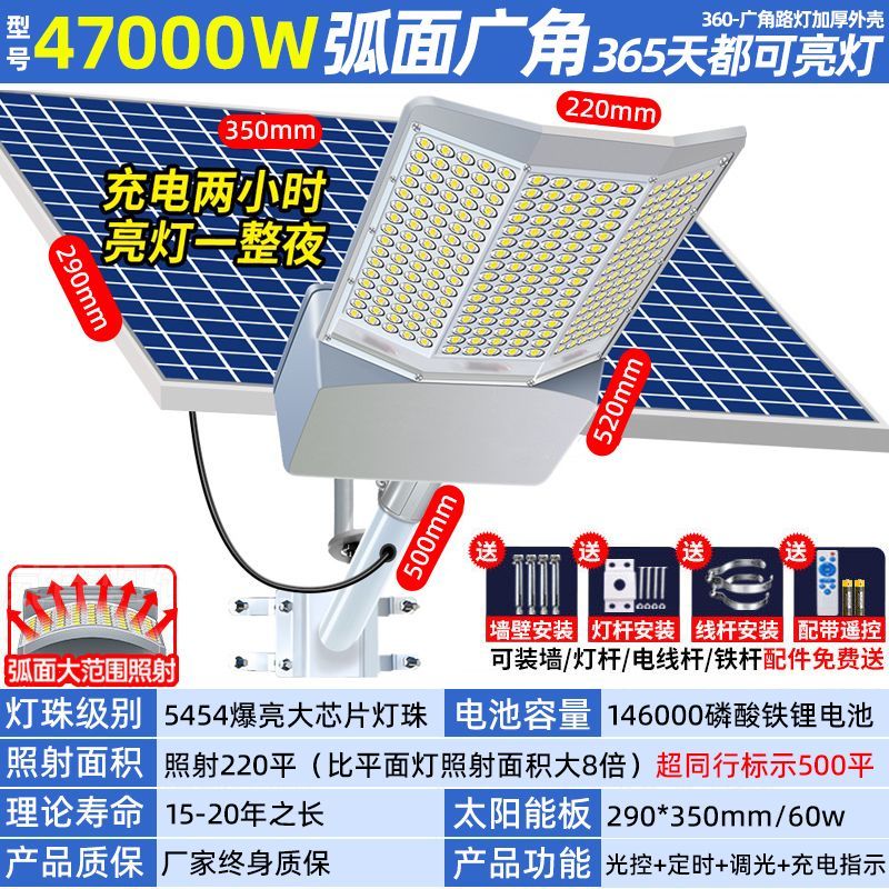 太阳能户外灯新款曲面超大功率特亮农村家用庭院防水led街道路灯