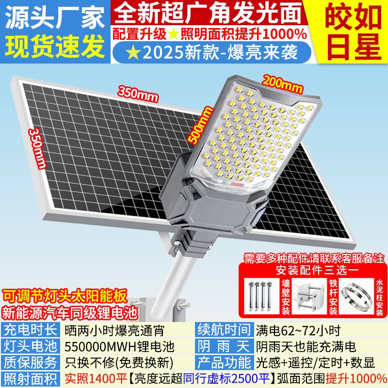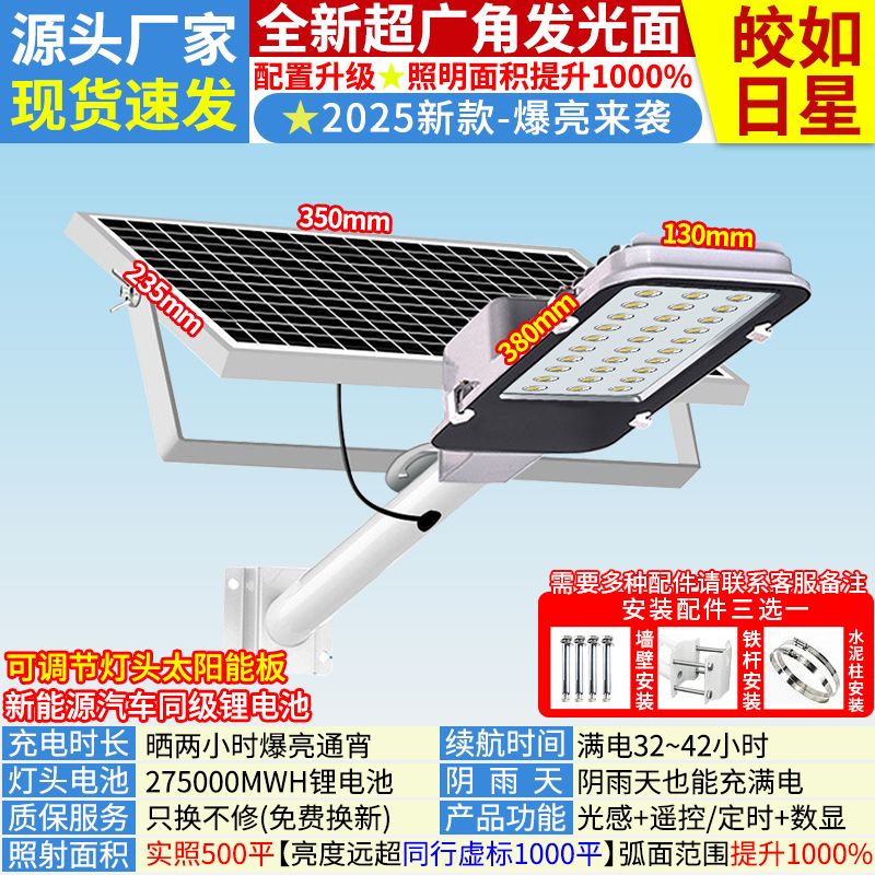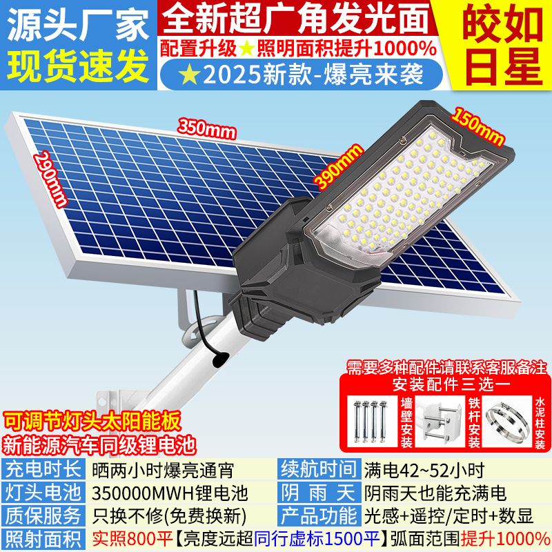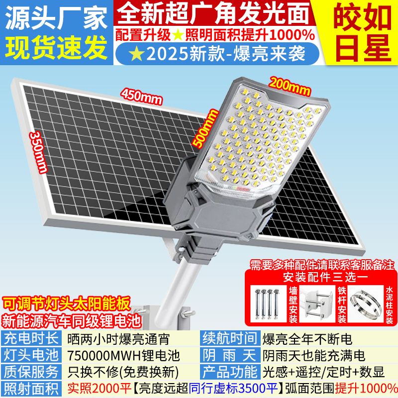 2025新太阳能照明灯大功率超亮户外灯家用庭院灯农村led防水路灯