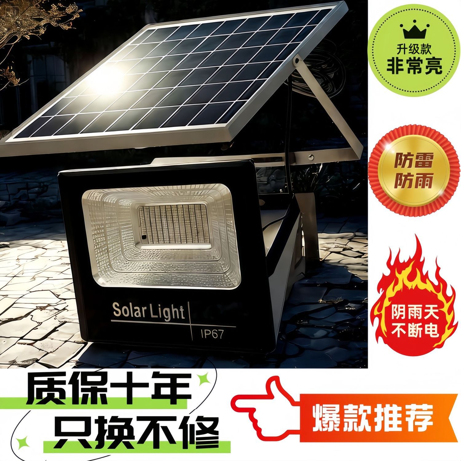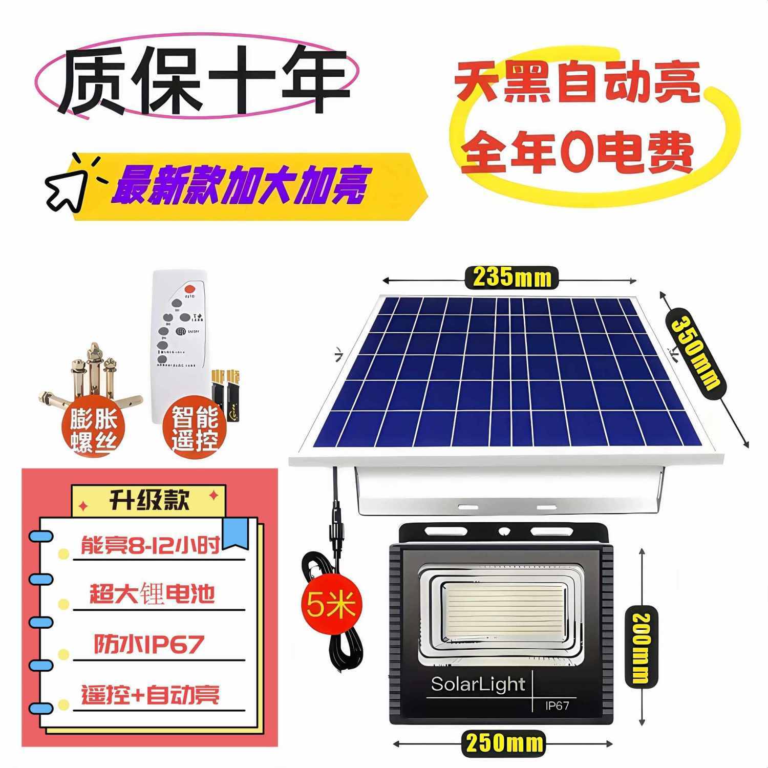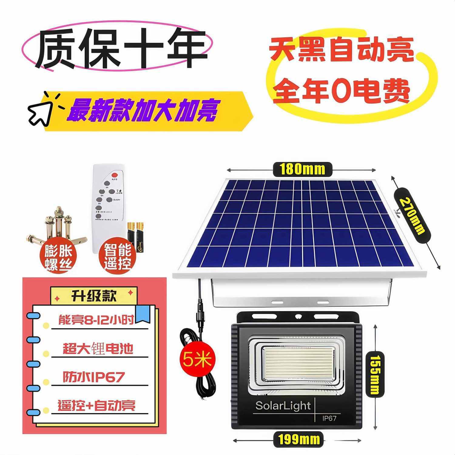 天黑自动亮超亮节能太阳能灯强光户外庭院投光照明灯防水防雷家用