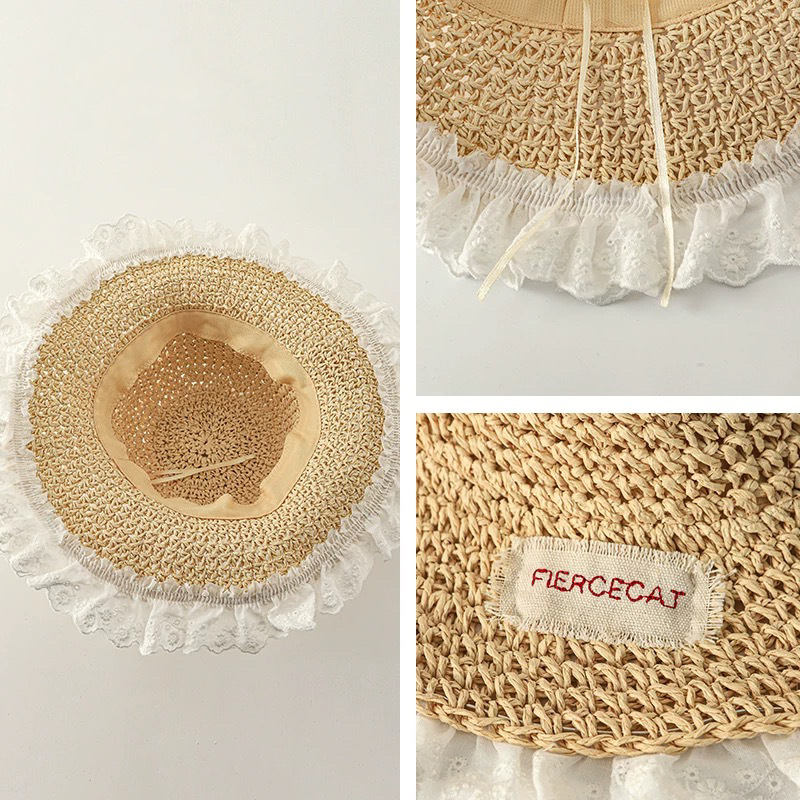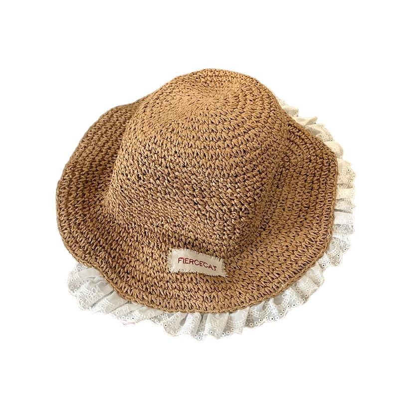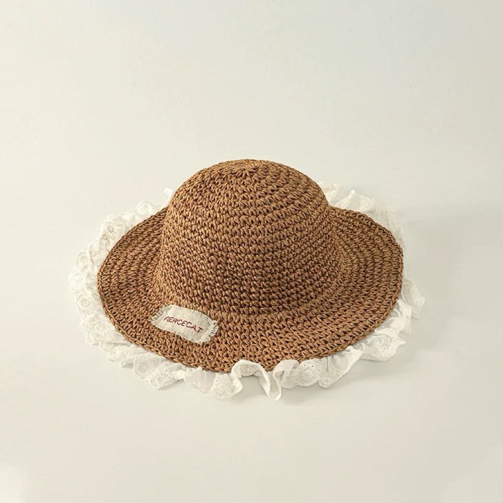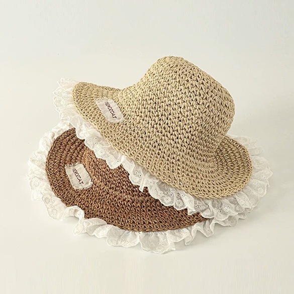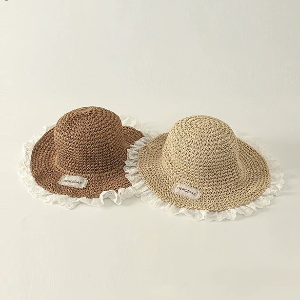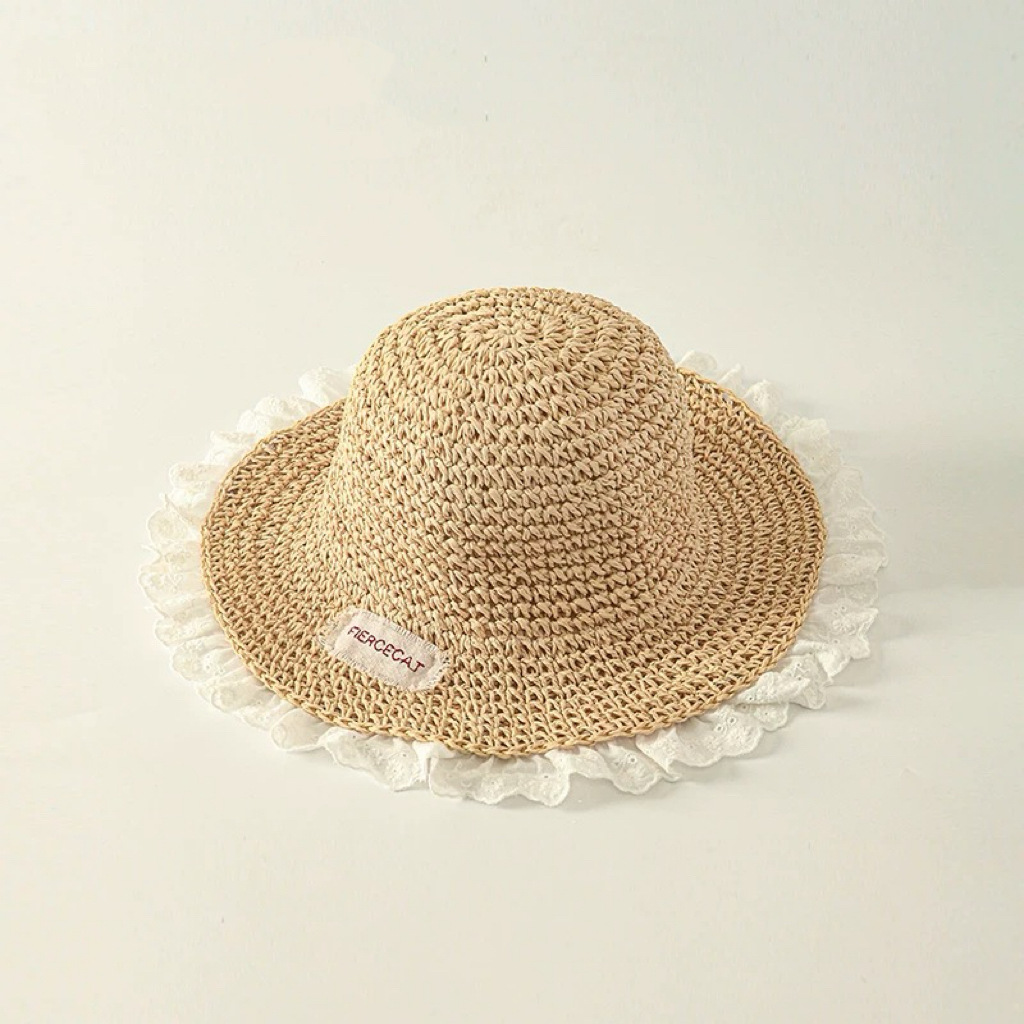 儿童帽子春夏季手工编织草帽女童透气大檐遮阳帽宝宝出游防晒凉帽