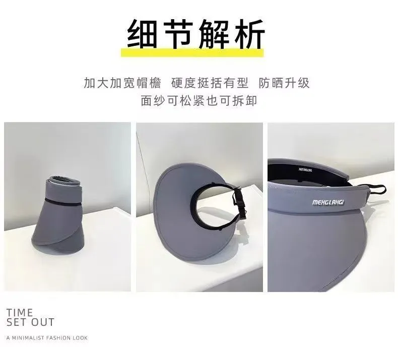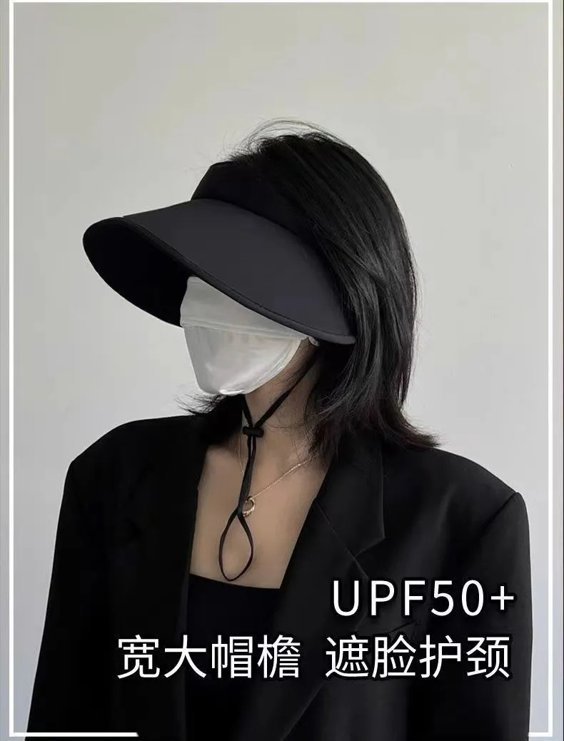 UPF50新款防晒加大遮阳帽帽子紫外线夏季帽檐空顶冰丝太阳帽
