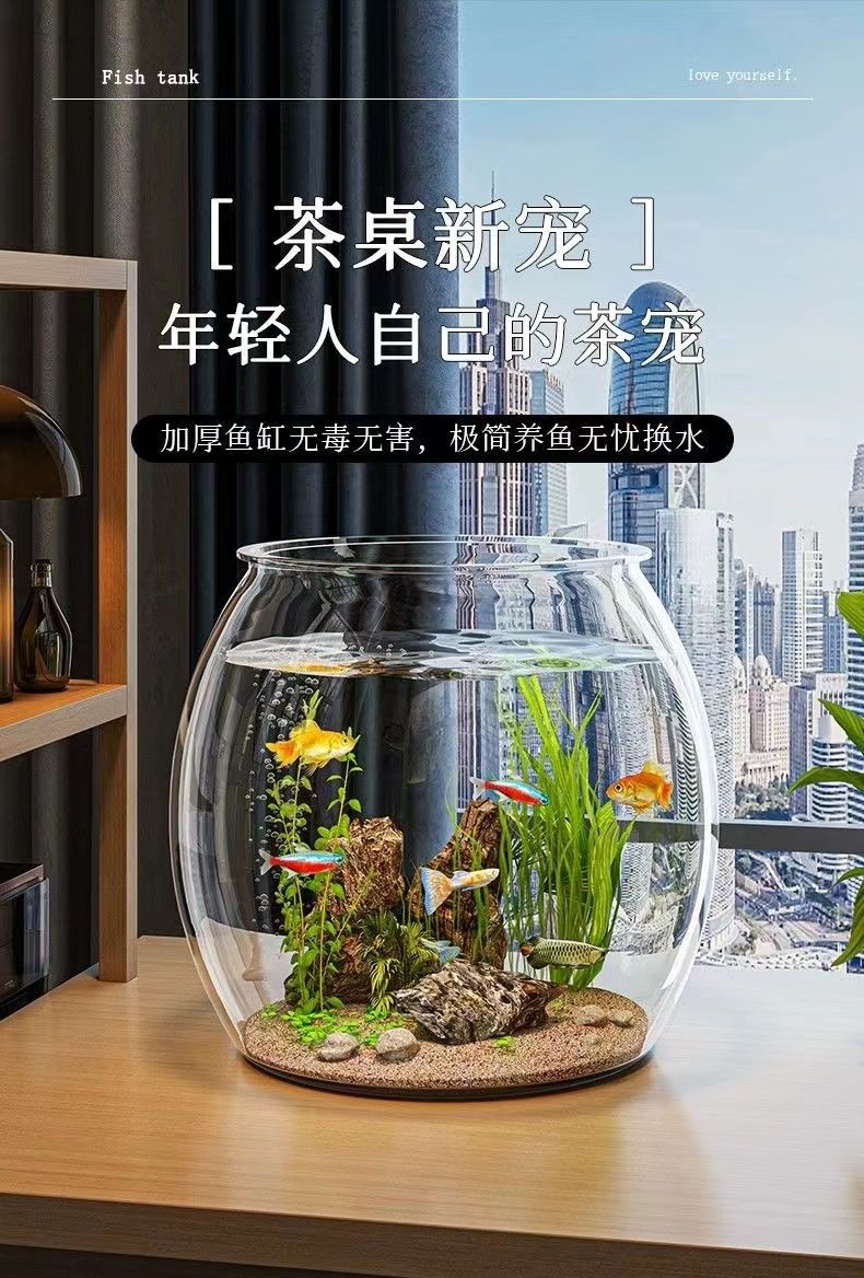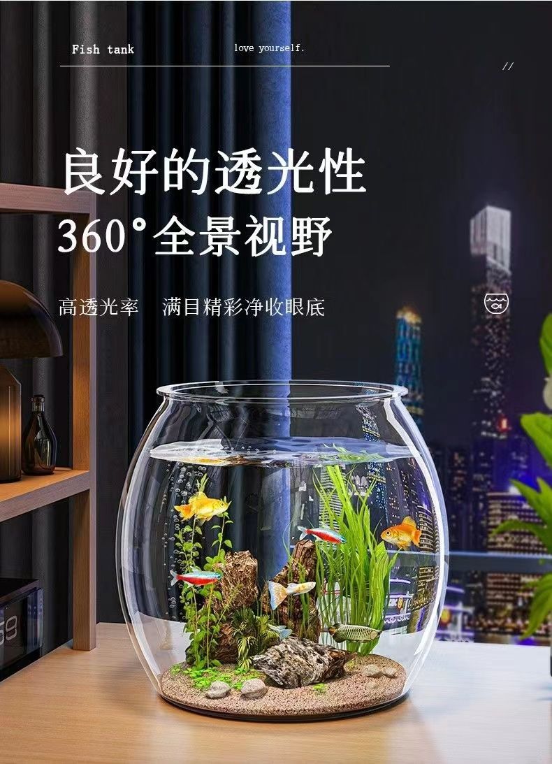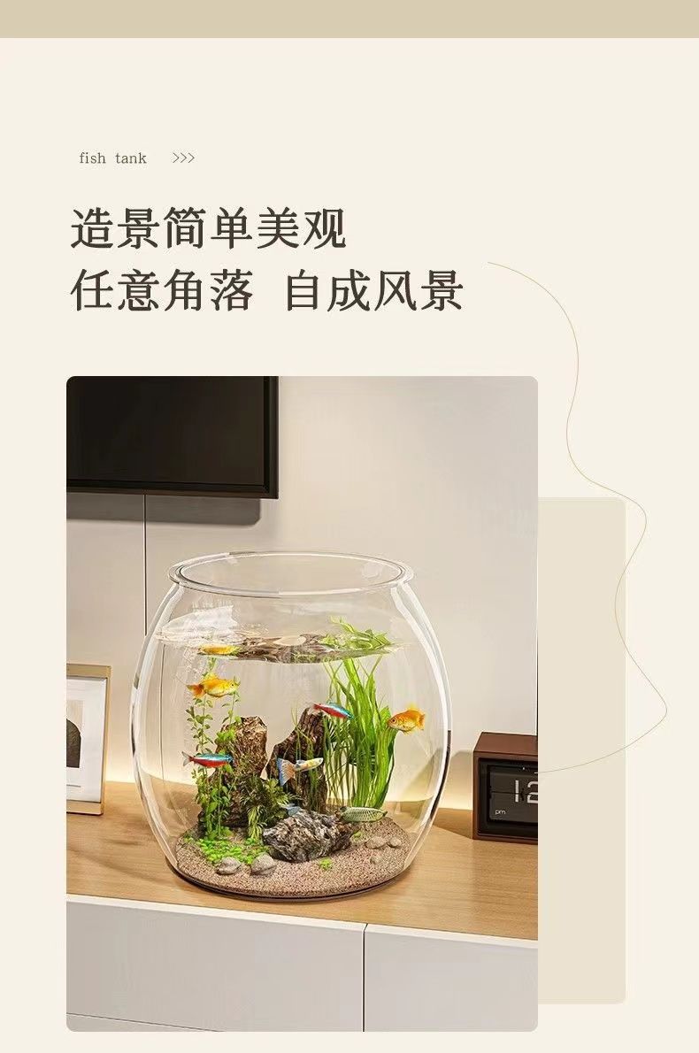 鱼缸小型家用亚克力鱼缸一体成型大号桌面仿真家庭装装饰五年级