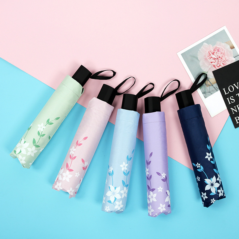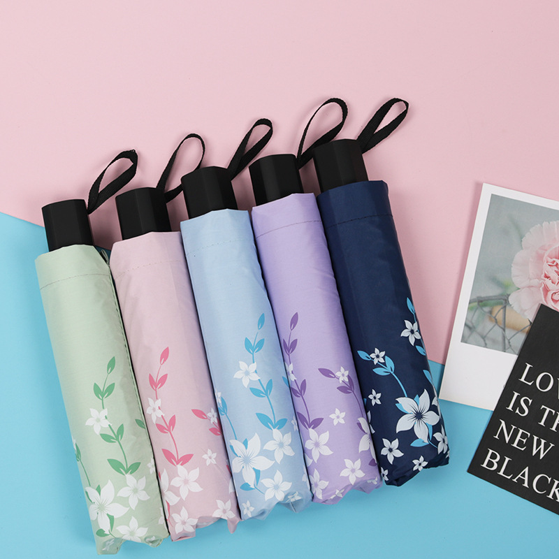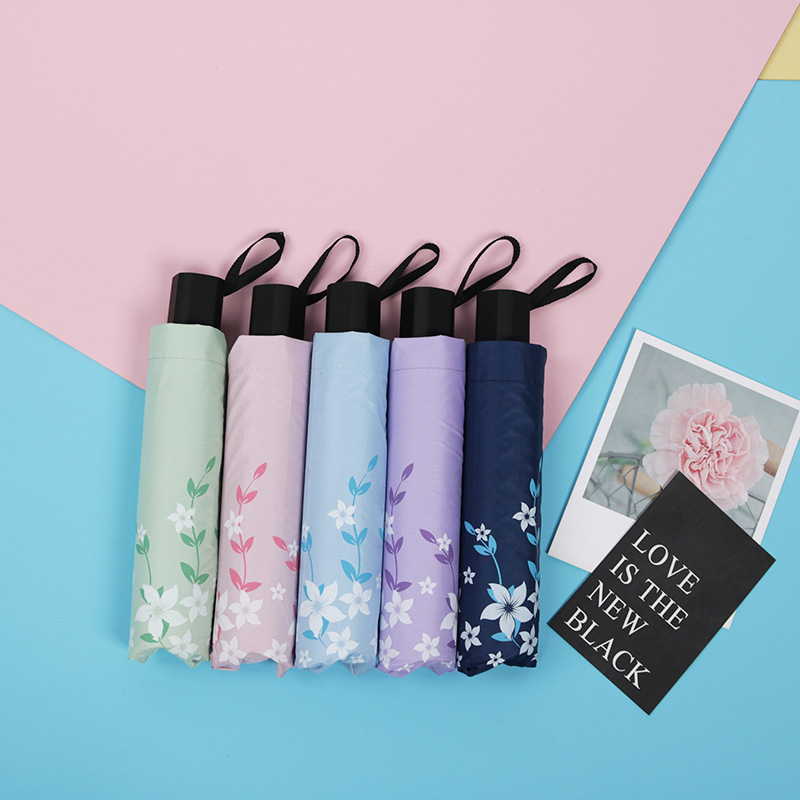三折伞 雨伞批发风车花黑胶晴雨两用太阳伞防晒防紫外线雨伞
