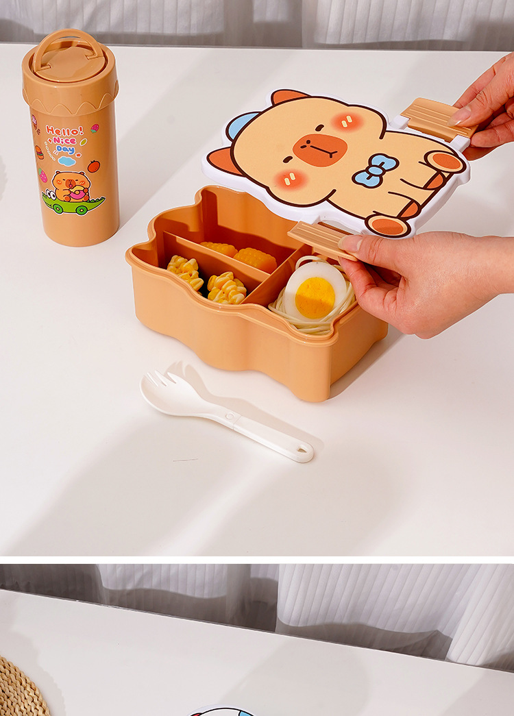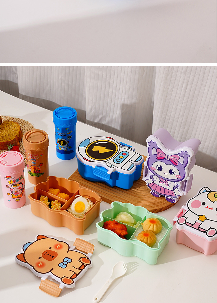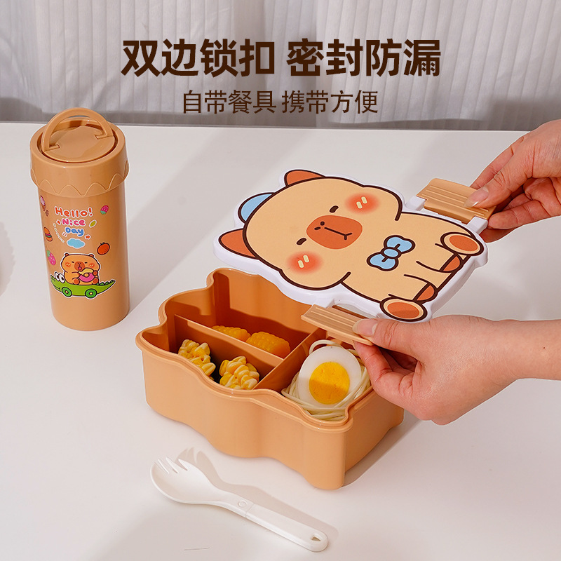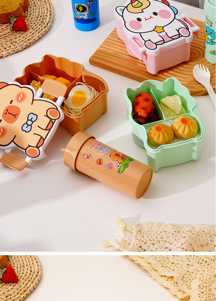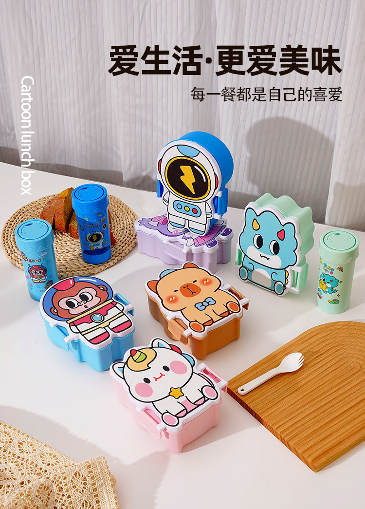 卡通饭盒分隔学生饭盒水杯套装便当盒上班族午餐盒自带餐具饭盒