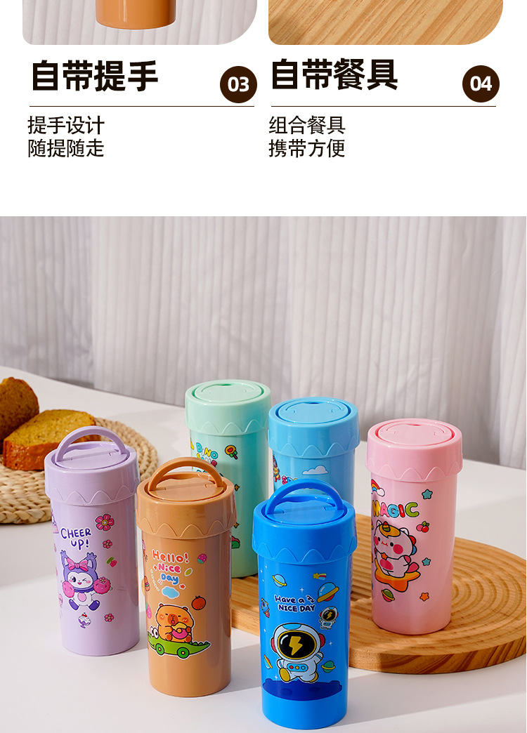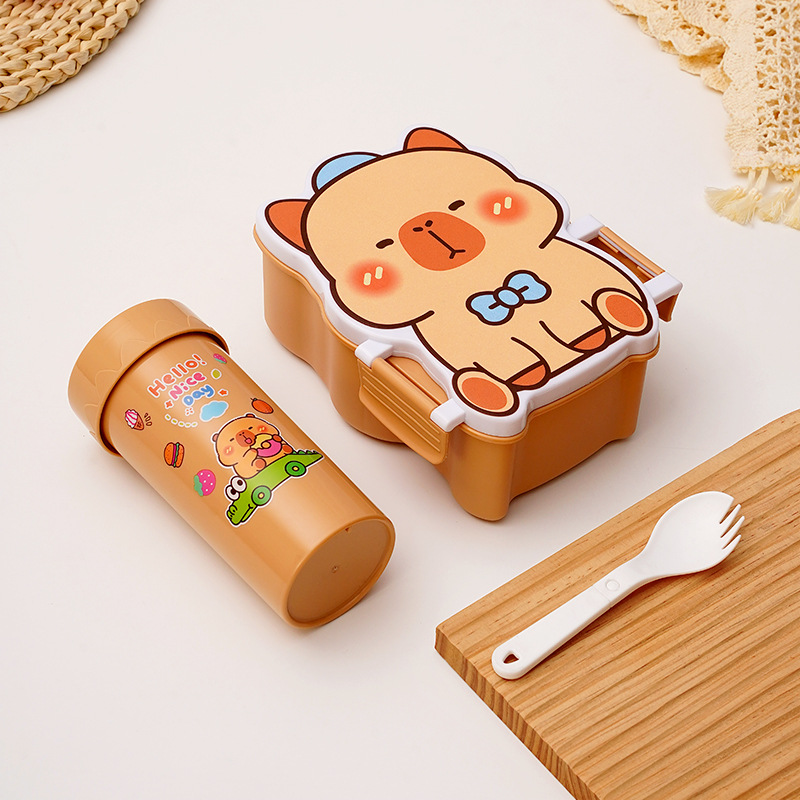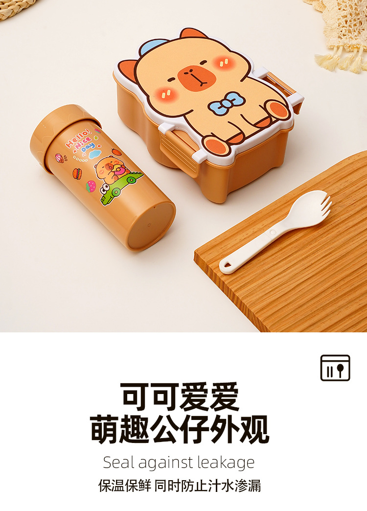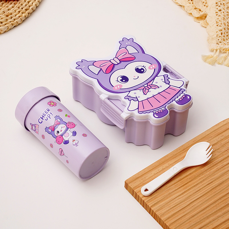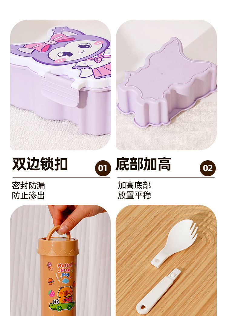 卡通饭盒分隔学生饭盒水杯套装便当盒上班族午餐盒自带餐具饭盒