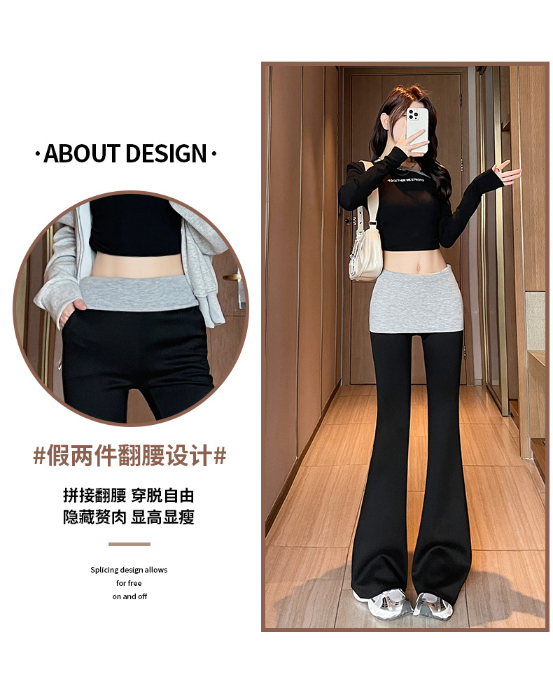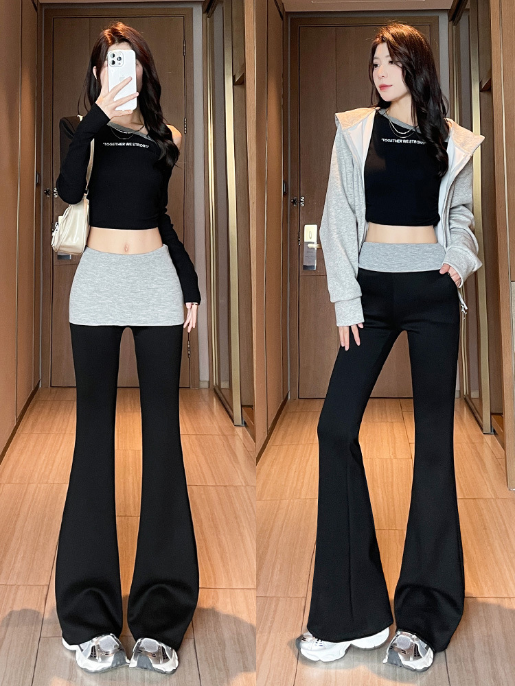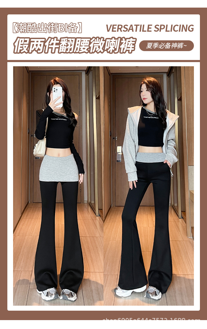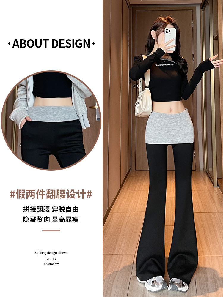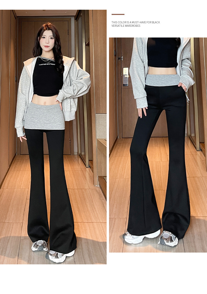 美式休闲卫裤女春季垂感撞色拼接修身显瘦百搭时尚微喇口袋瑜伽裤