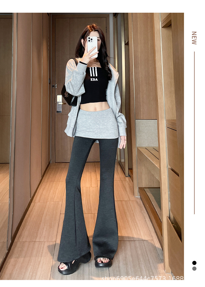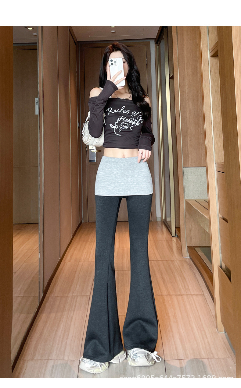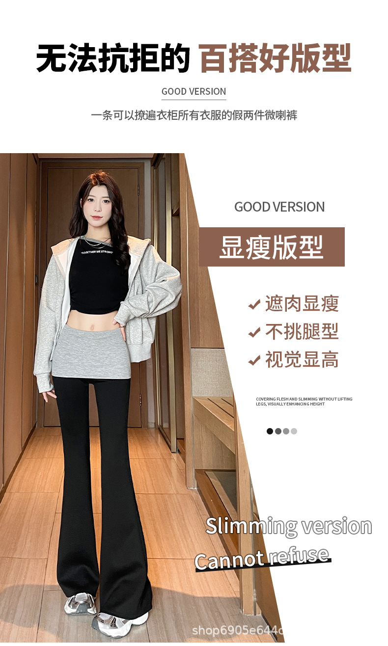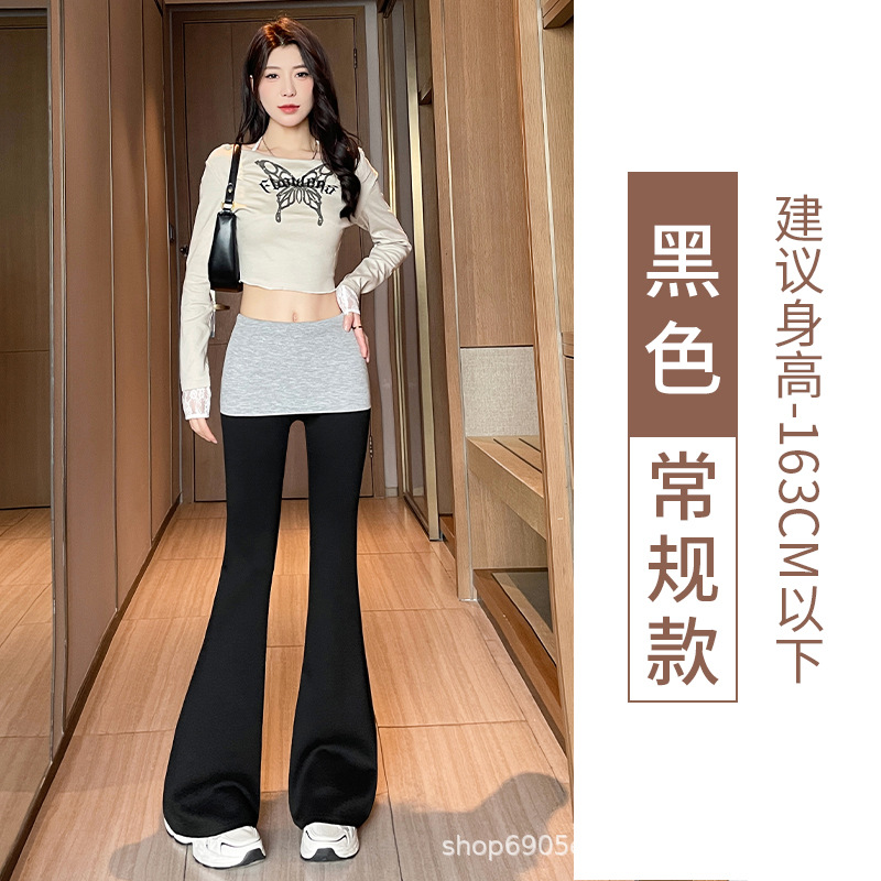 美式休闲卫裤女春季垂感撞色拼接修身显瘦百搭时尚微喇口袋瑜伽裤