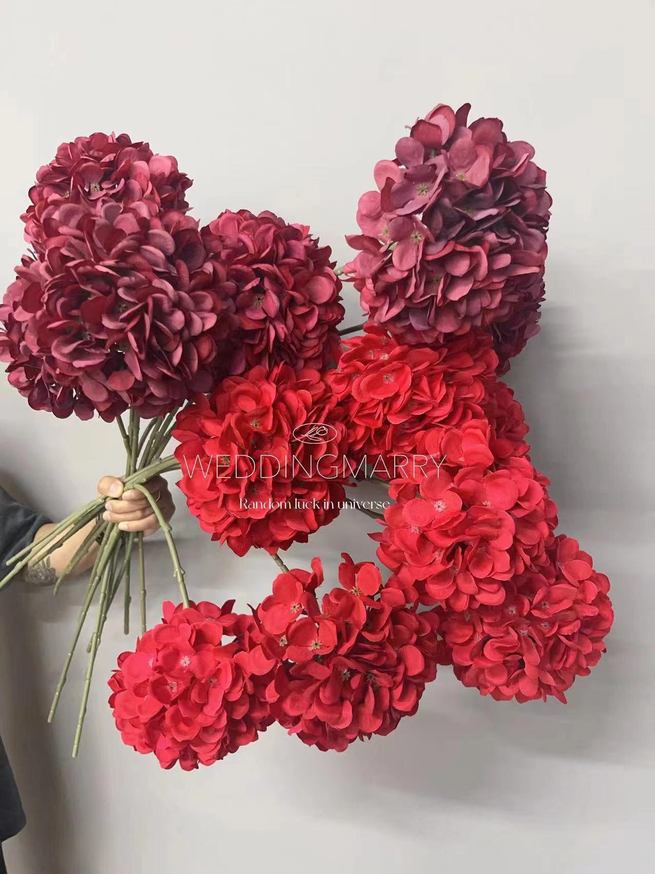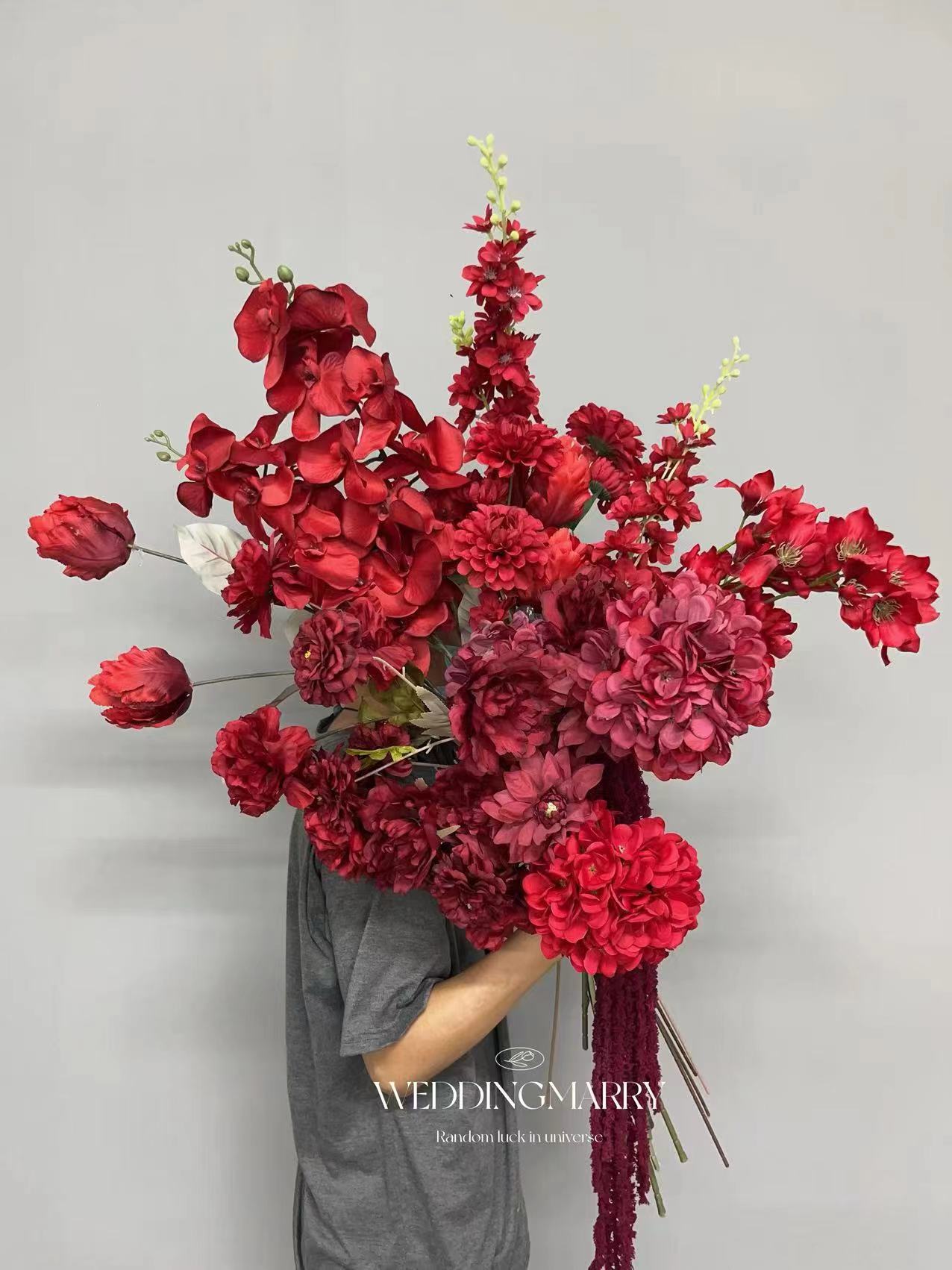 红色系暗红色婚礼仿真花酒店布置婚礼堂装饰吊顶假花装饰酒红色