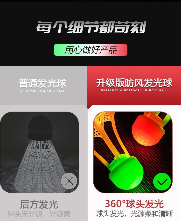 夜光发光羽毛球球防风超耐打不烂室外荧光亮带灯的塑料尼龙球