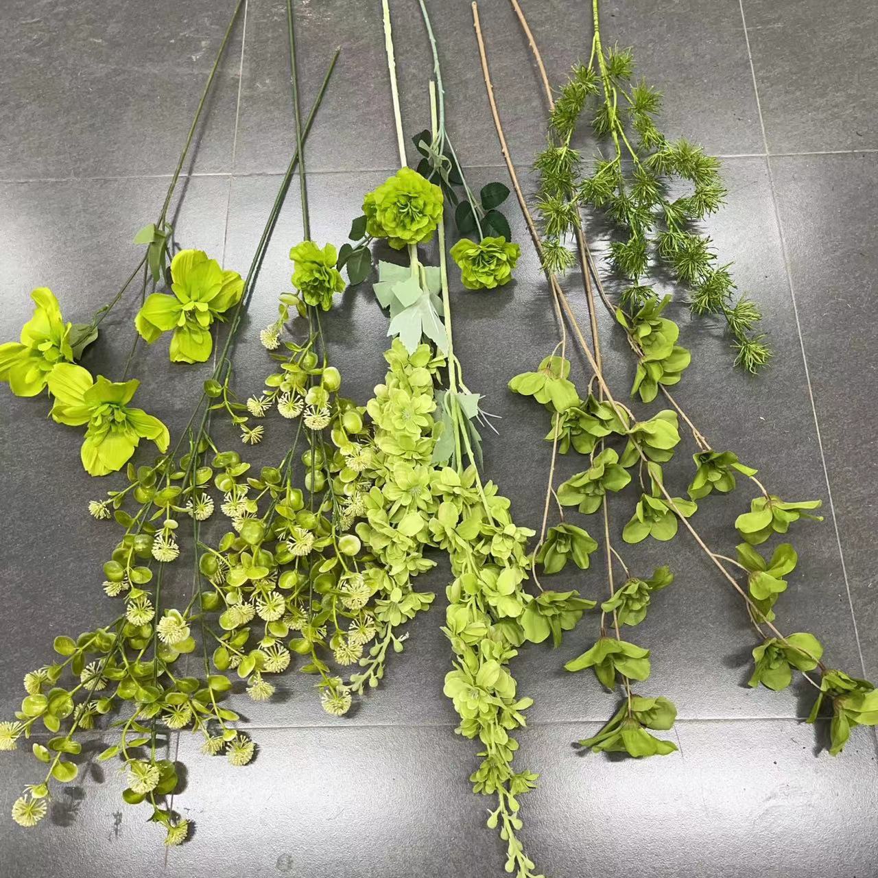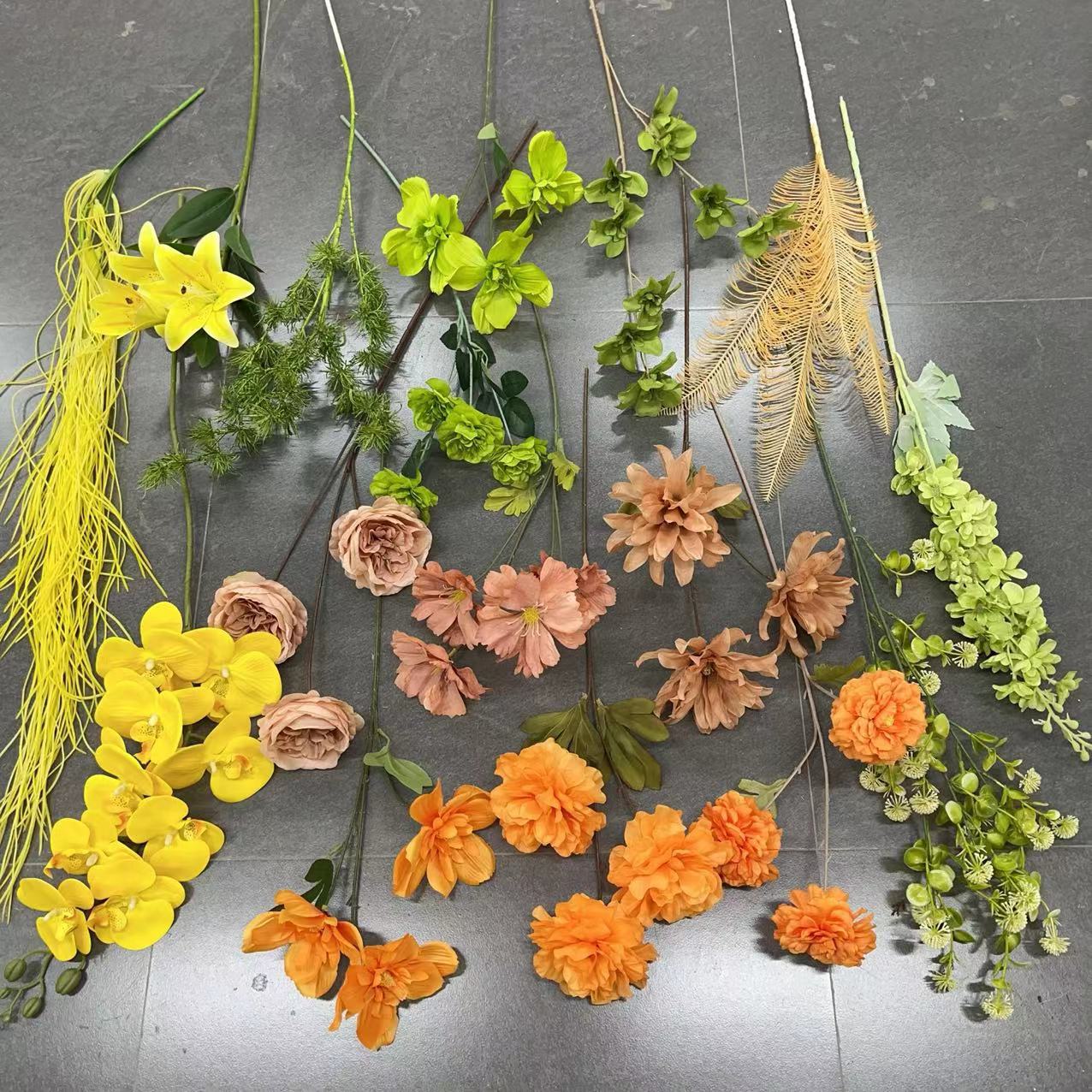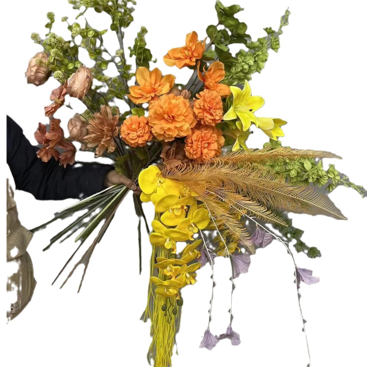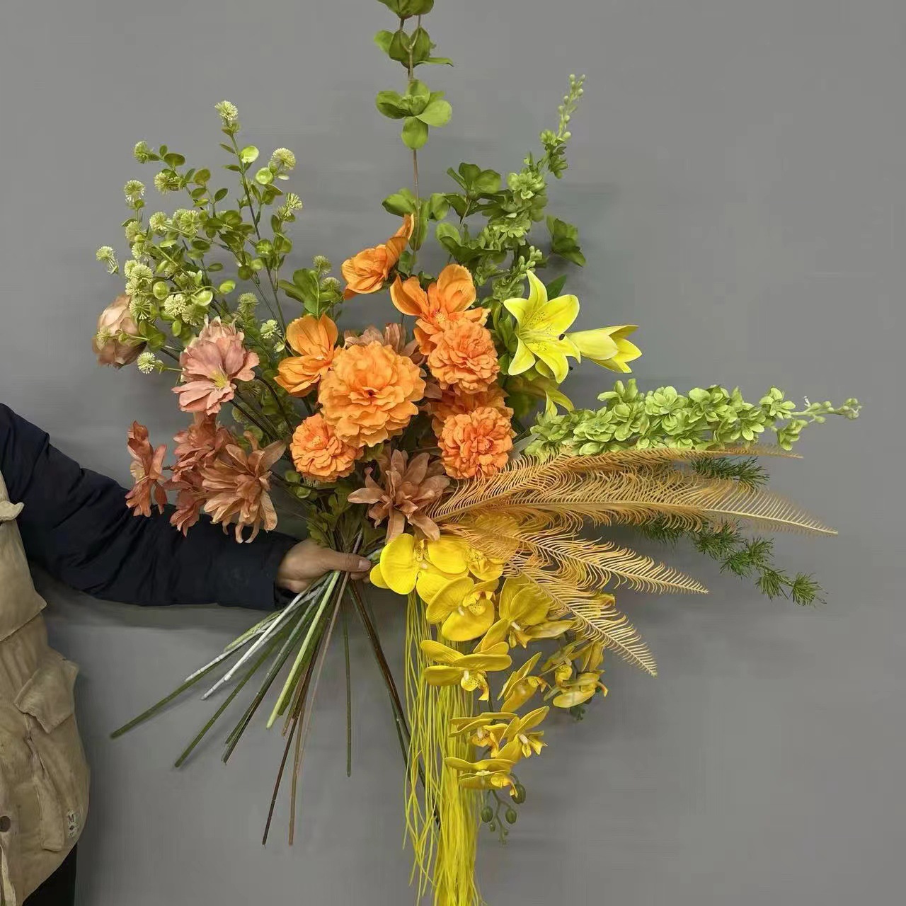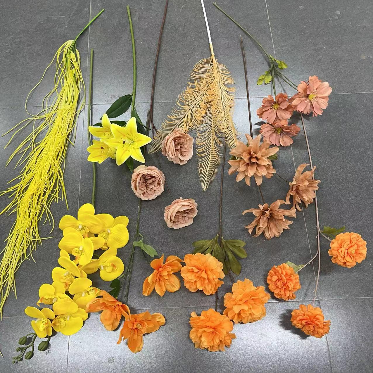 春夏黄色橙色果绿色户外婚礼仿真花婚礼堂花排假花绢花背景垂流苏