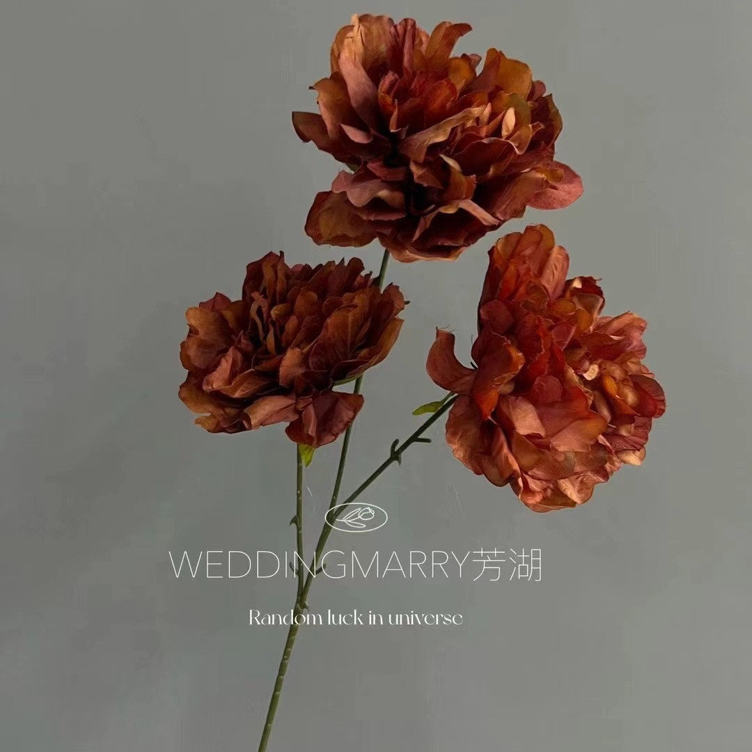秋色奶茶咖啡色挑高玫瑰绣球焦糖色婚礼堂软装吊顶侘寂风复古婚礼
