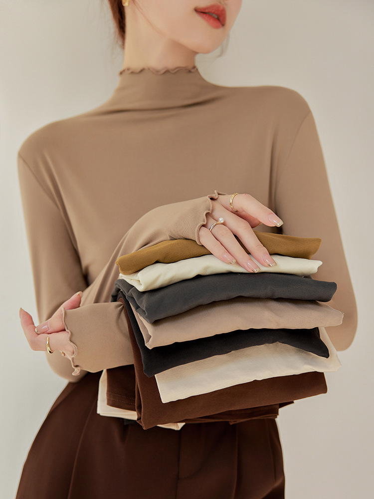 品质严选木耳长袖打底衫女半高领韩版上衣秋冬保暖纯色衣T恤严选