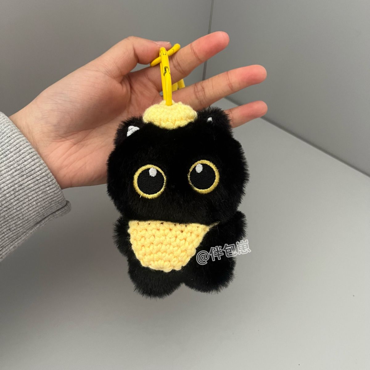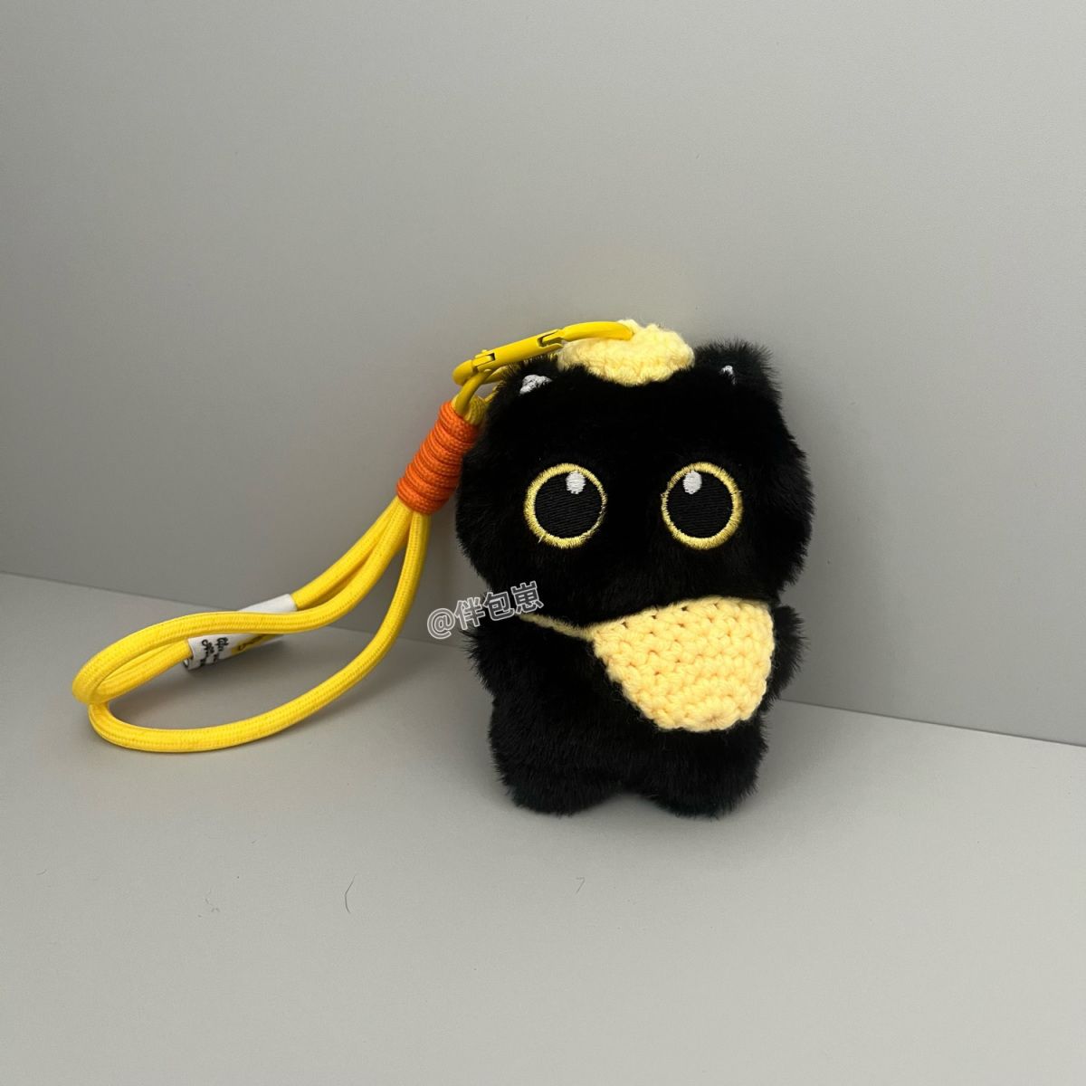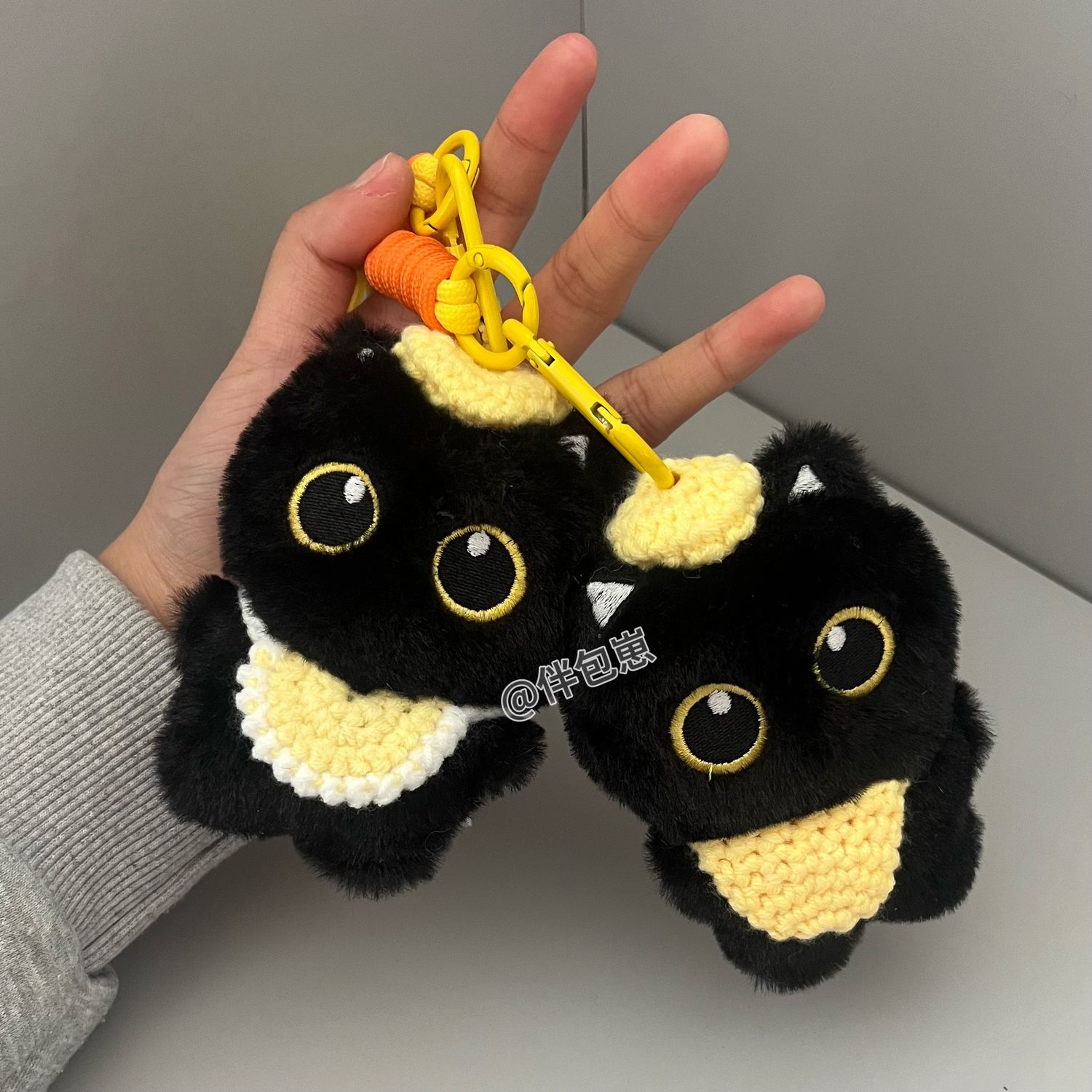 ins风创意吱吱叫卡通毛绒小黑猫挎包挂件多巴胺口水巾挂饰钥匙扣