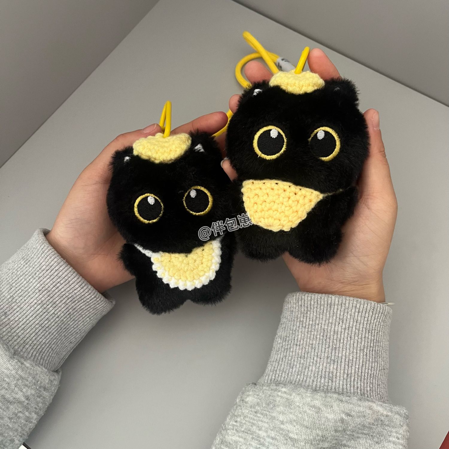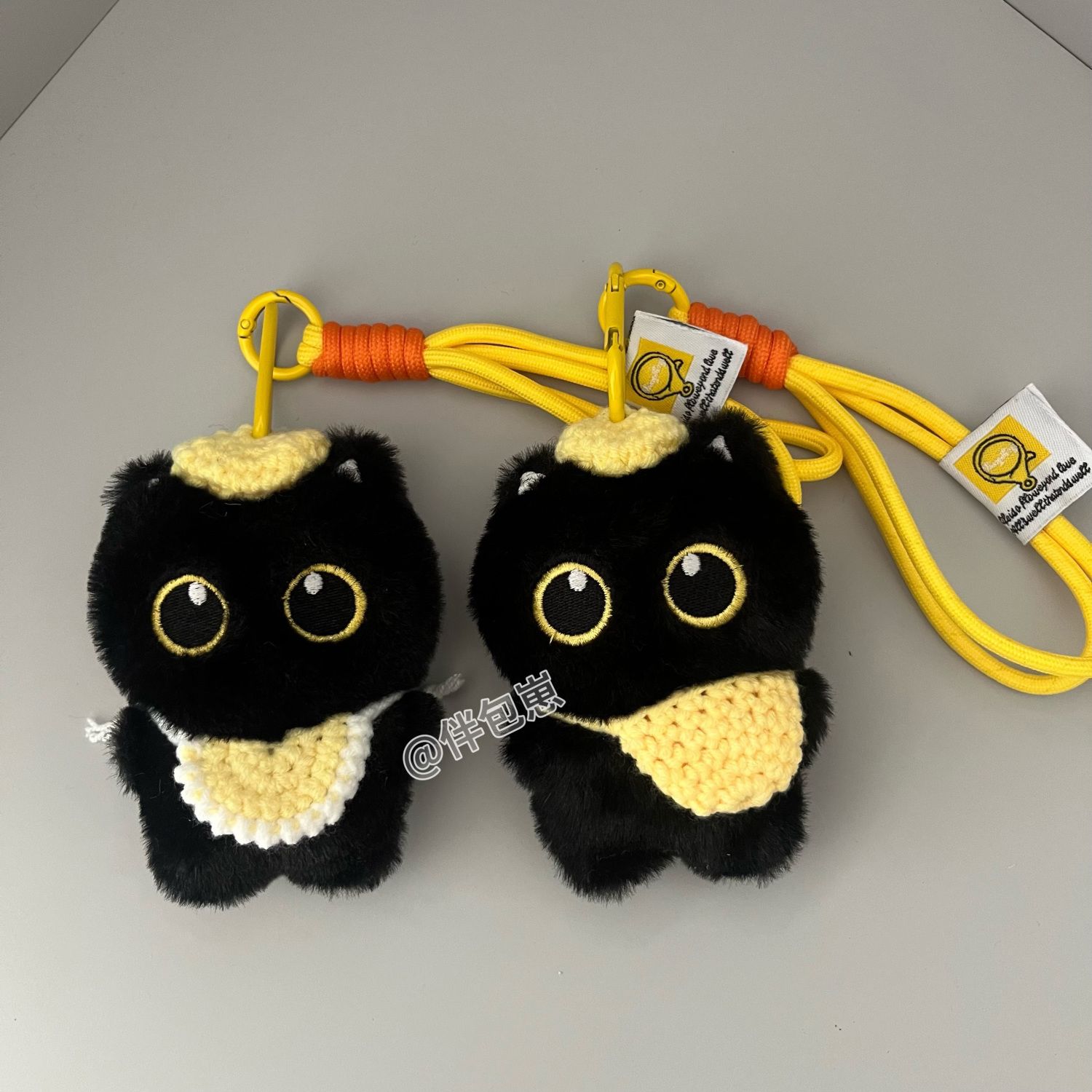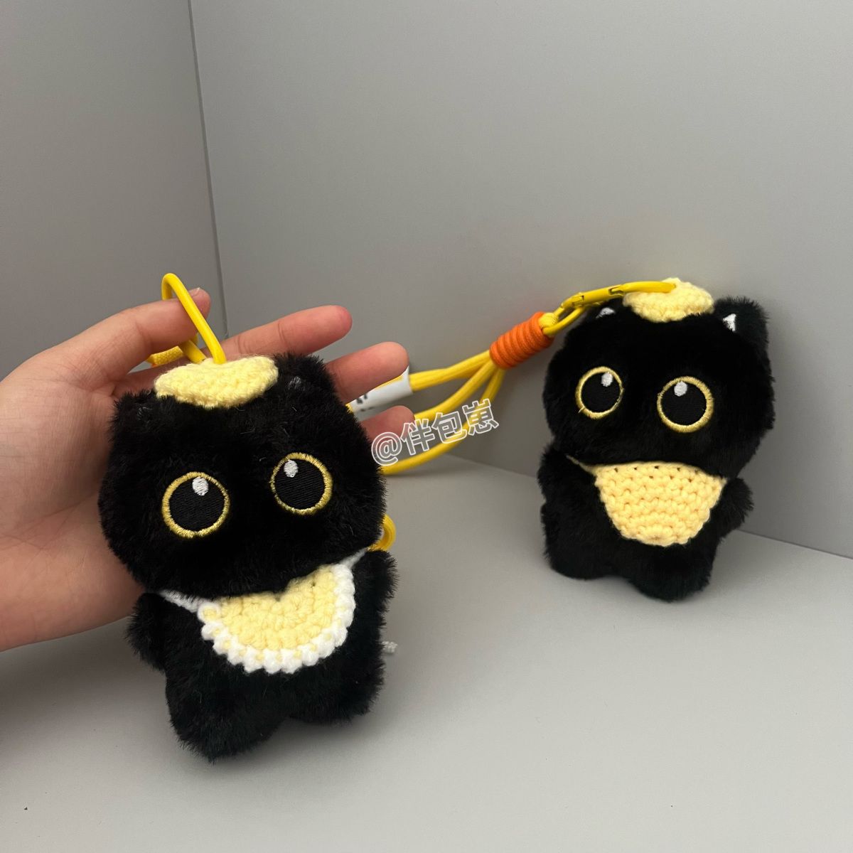 ins风创意吱吱叫卡通毛绒小黑猫挎包挂件多巴胺口水巾挂饰钥匙扣