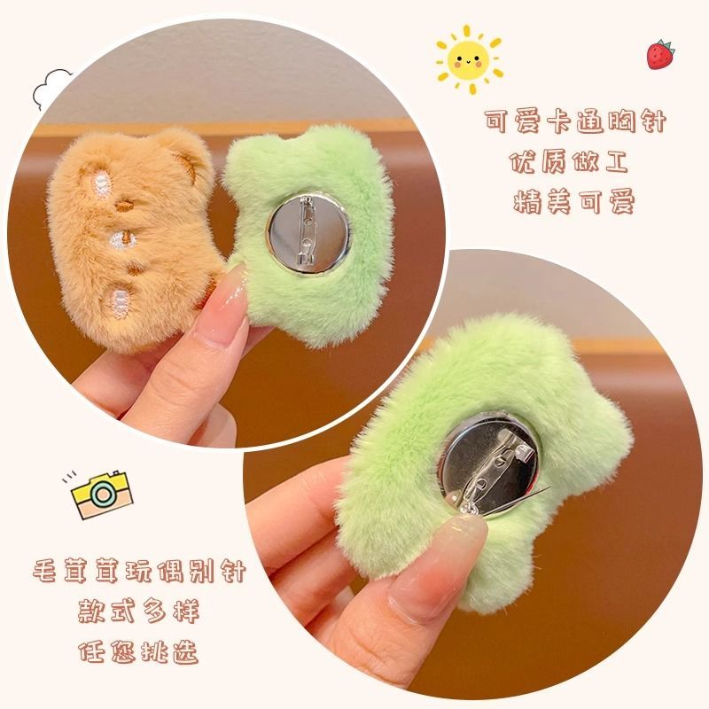 可爱卡通小熊青蛙鸡仔玩偶网红公仔兔子毛绒胸针别针包包装饰配饰