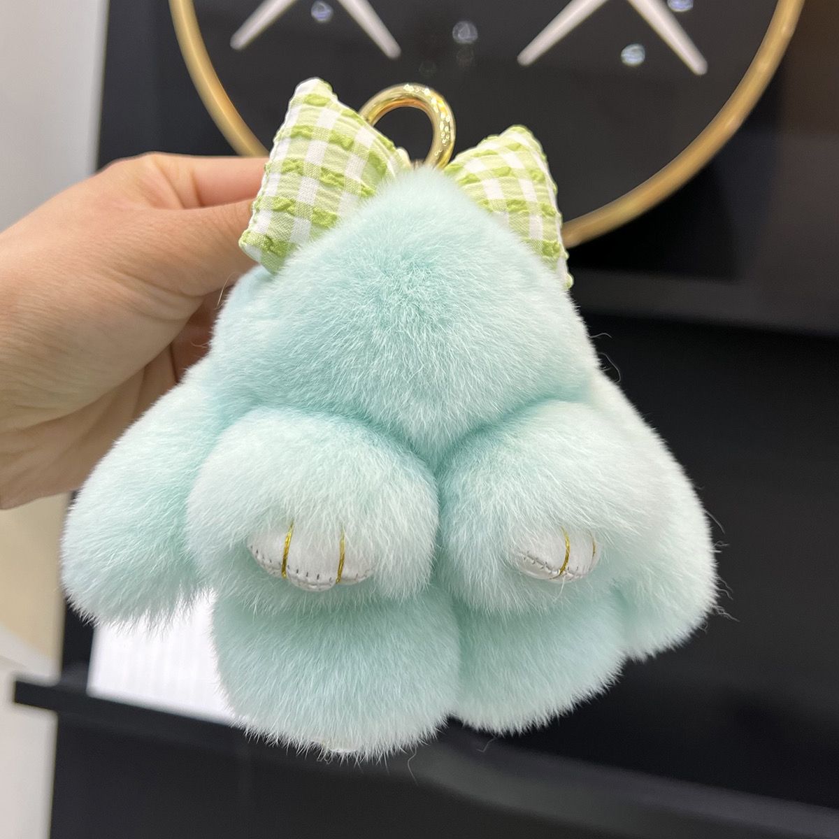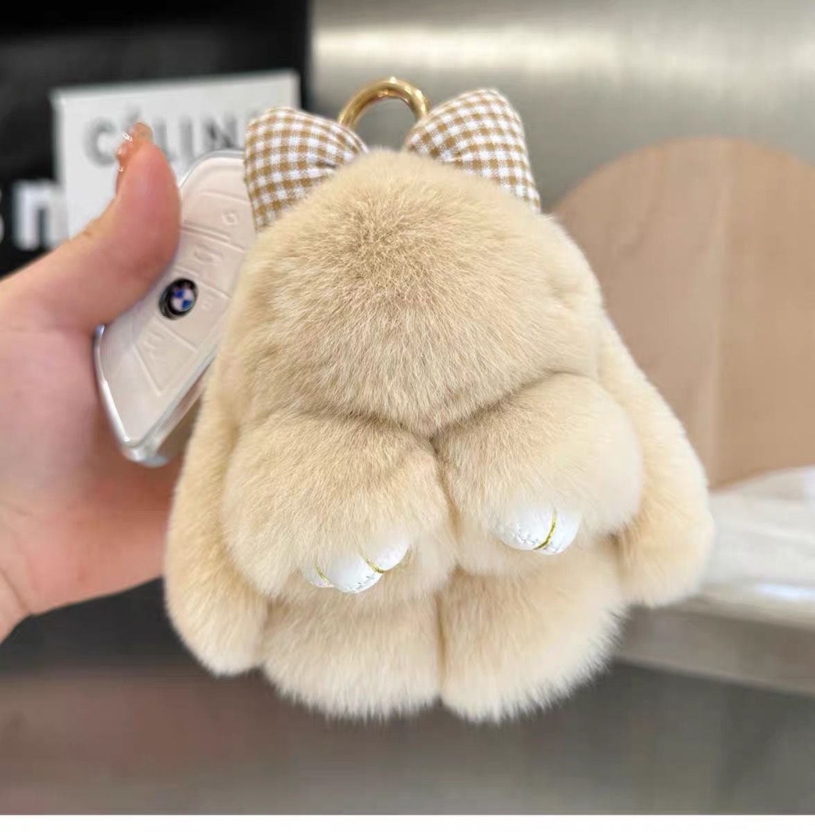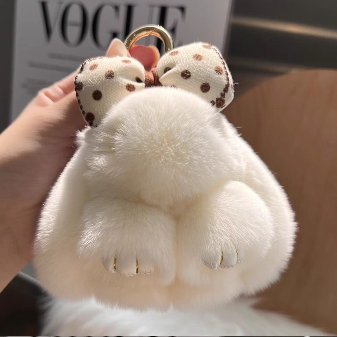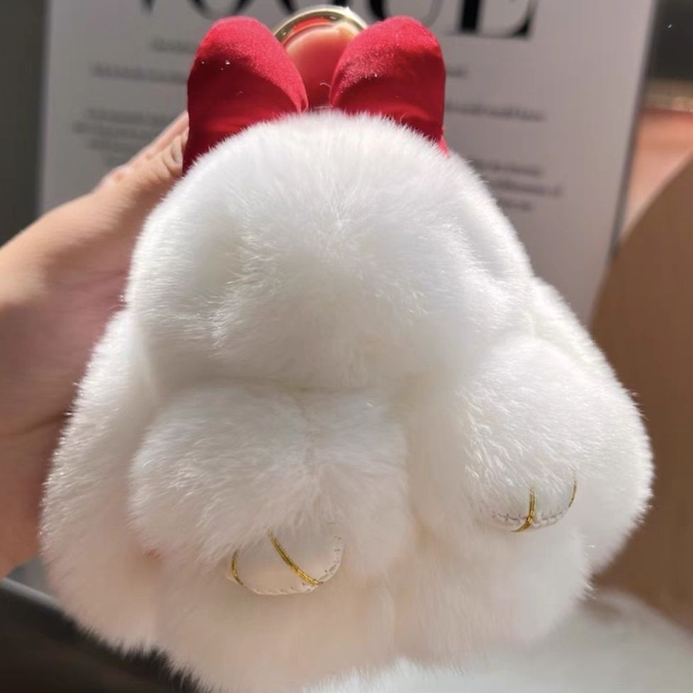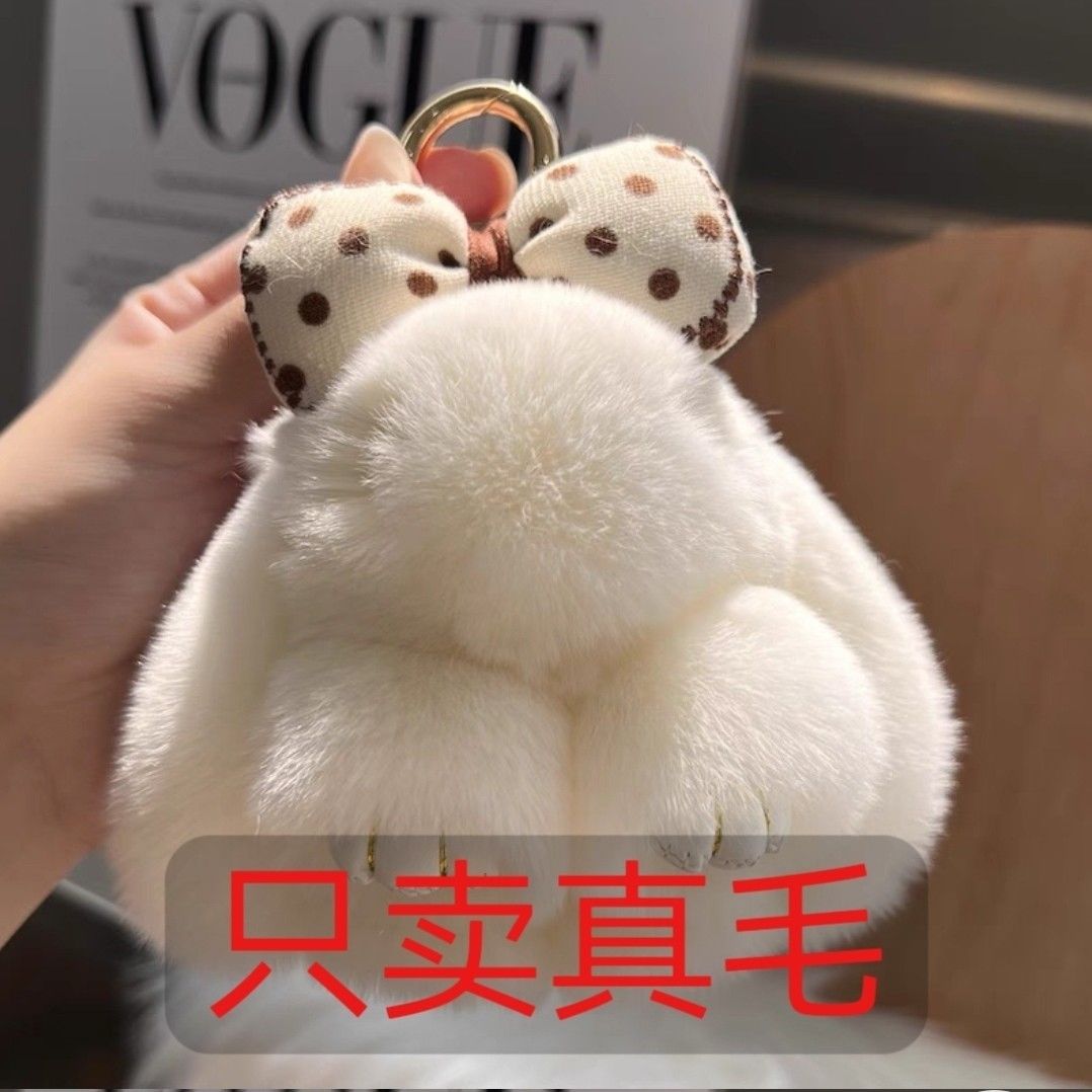 真獭兔毛蝴蝶结小车钥匙扣獭兔毛挂件礼物包包挂饰网红兔子