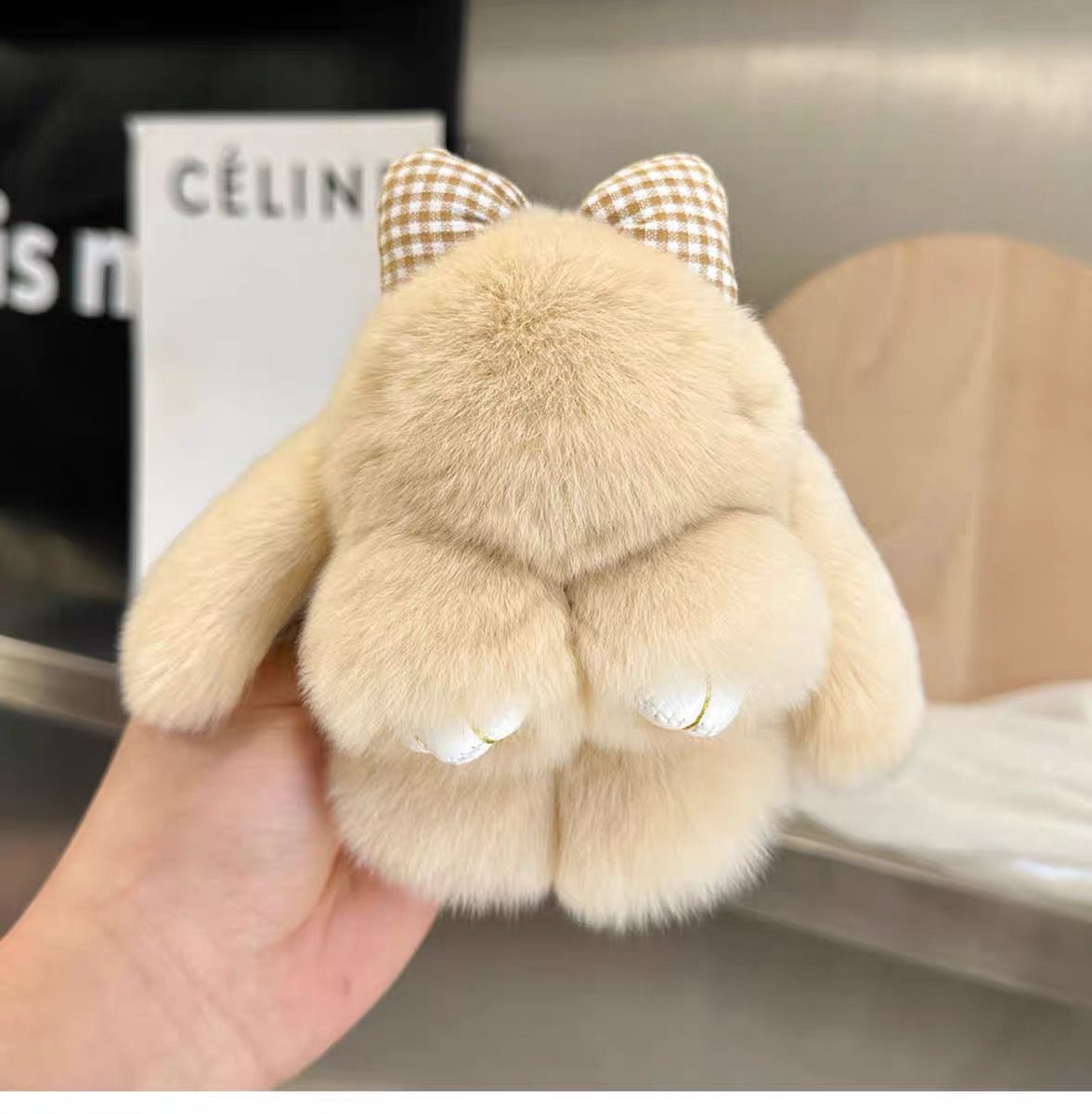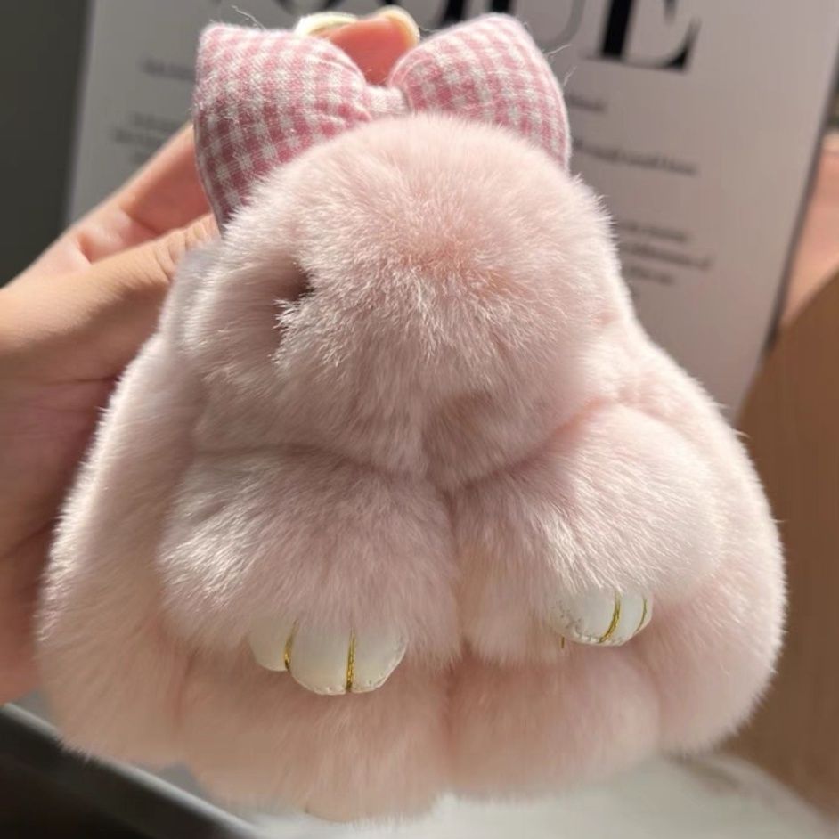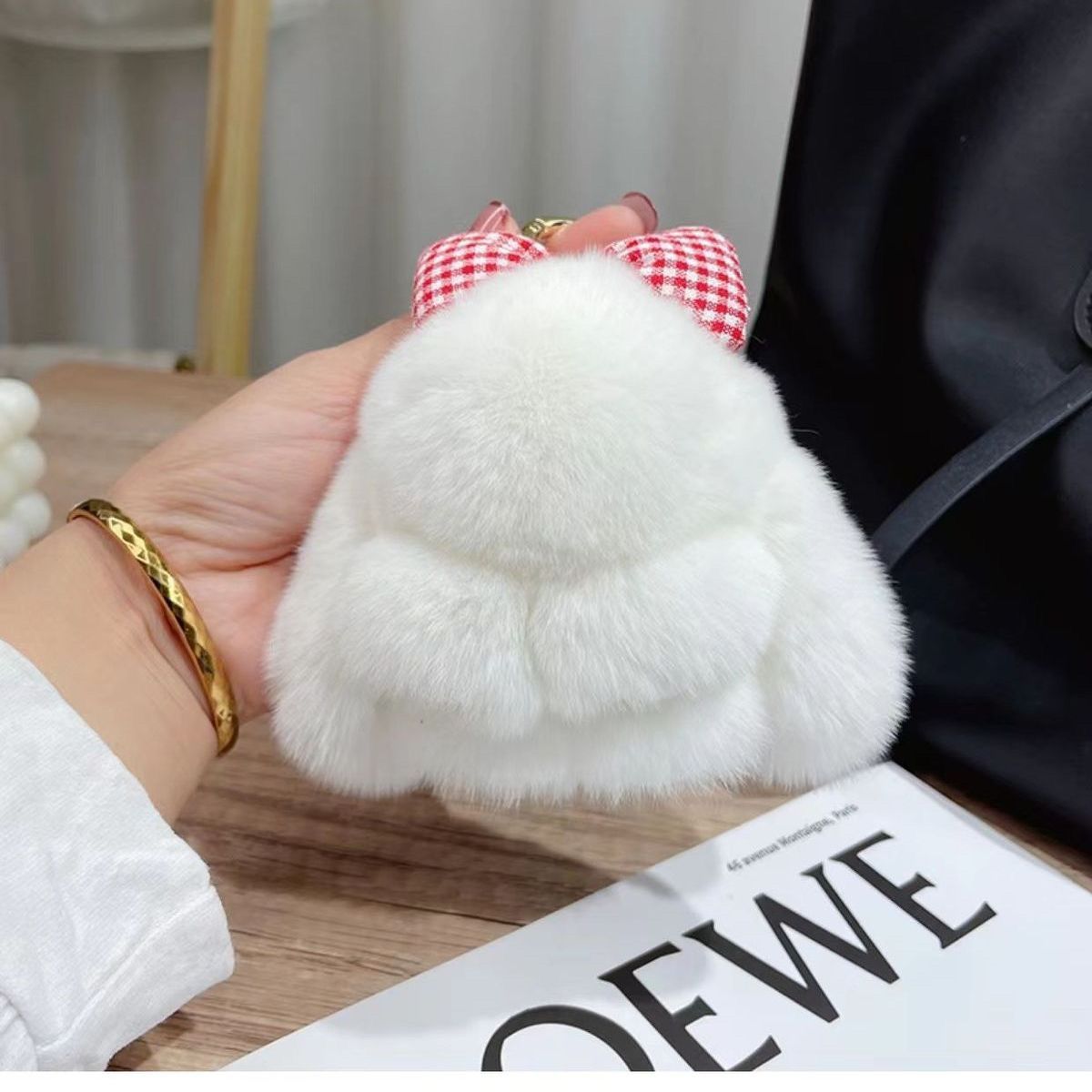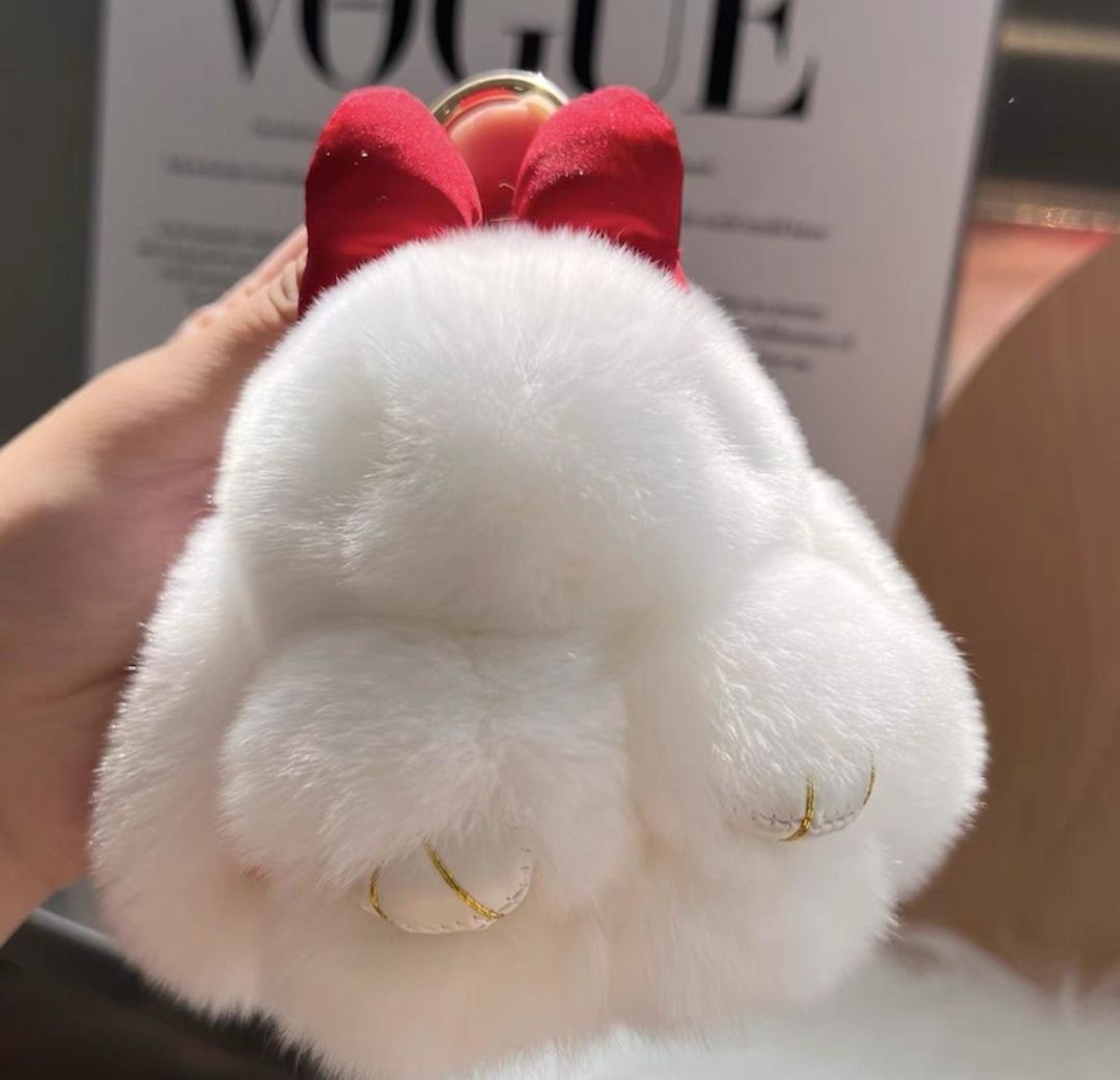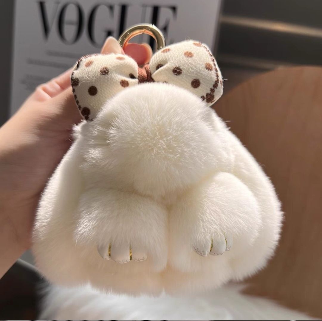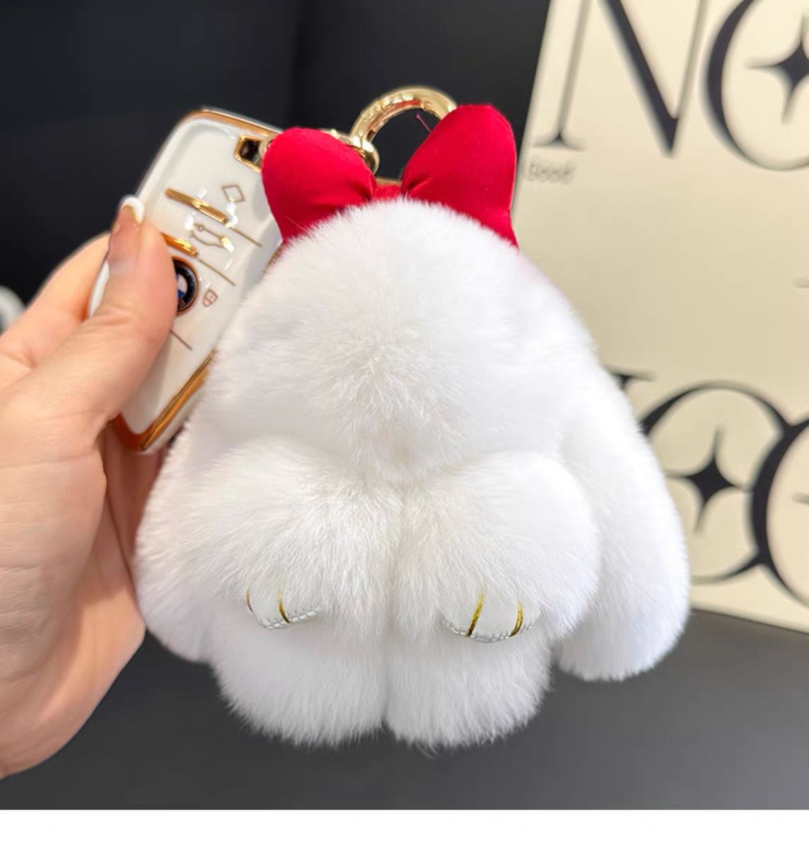 真獭兔毛蝴蝶结小车钥匙扣獭兔毛挂件礼物包包挂饰网红兔子