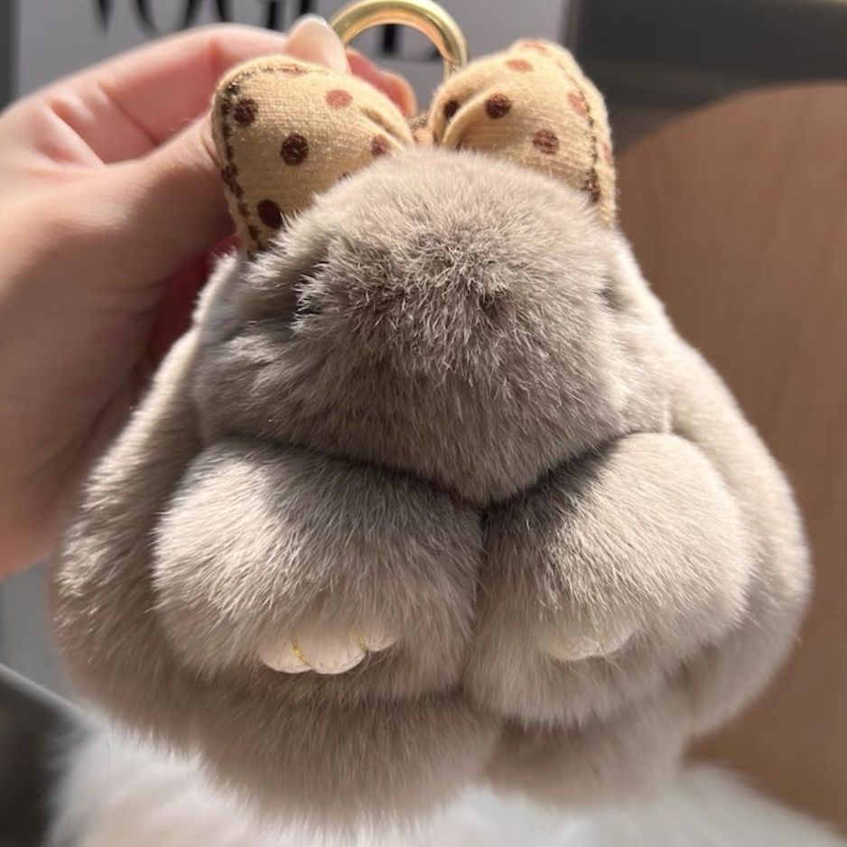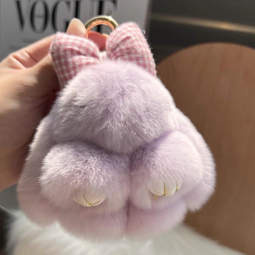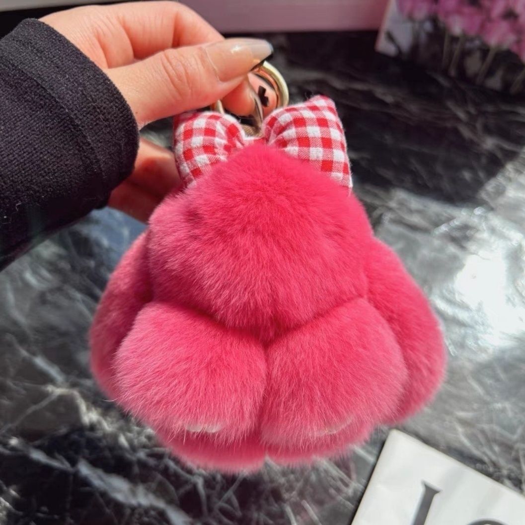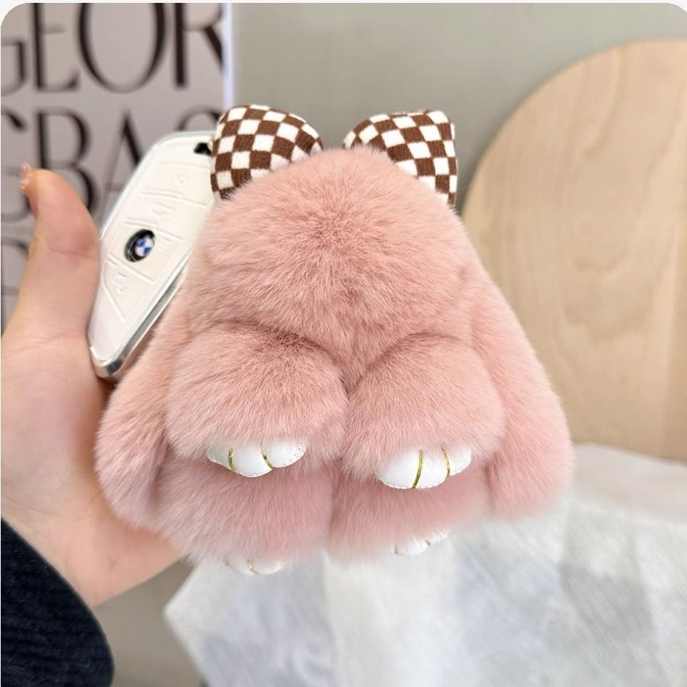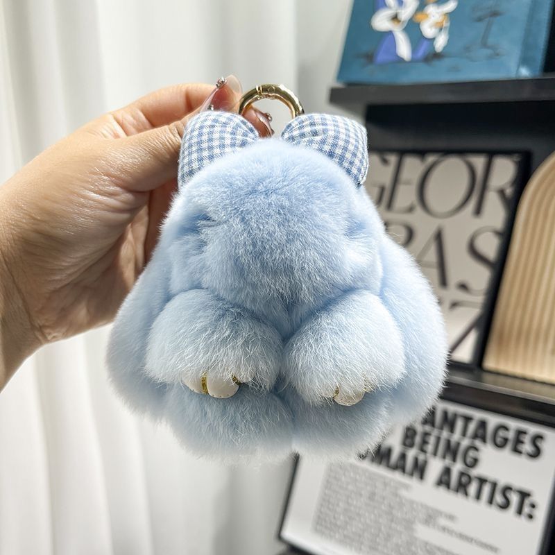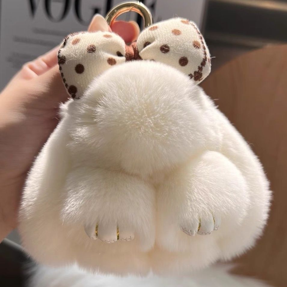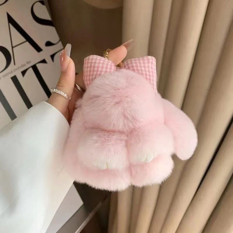 真獭兔毛蝴蝶结小车钥匙扣獭兔毛挂件礼物包包挂饰网红兔子